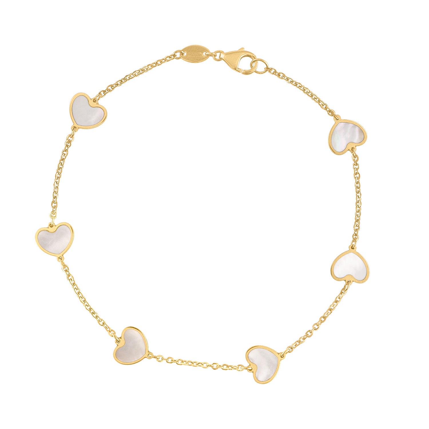 14KT Yellow Gold mother of pearl six small heart bracelet