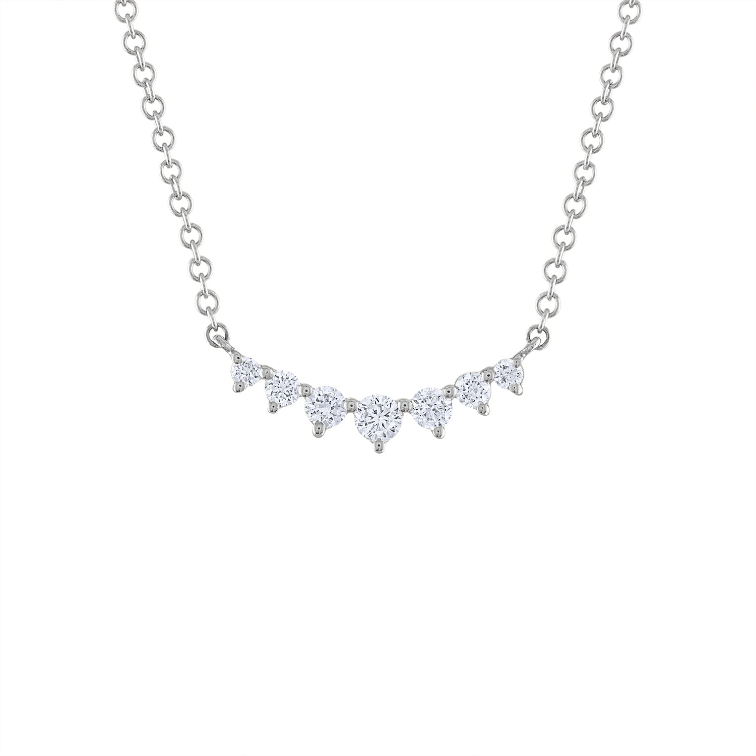 14KT White or Yellow Gold diamond seven prong curve necklace