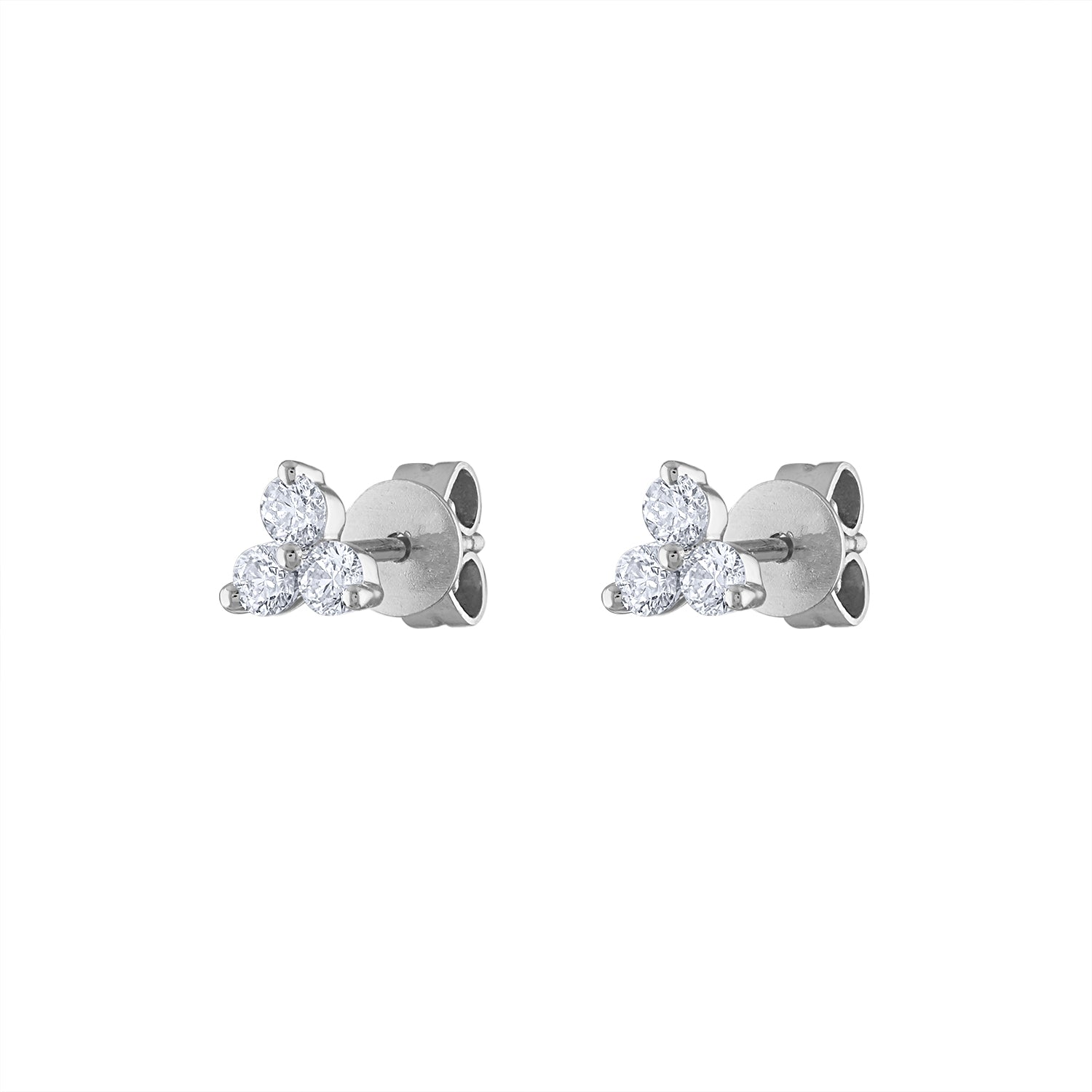 14KT White, Yellow, or Rose Gold three diamond medium earring