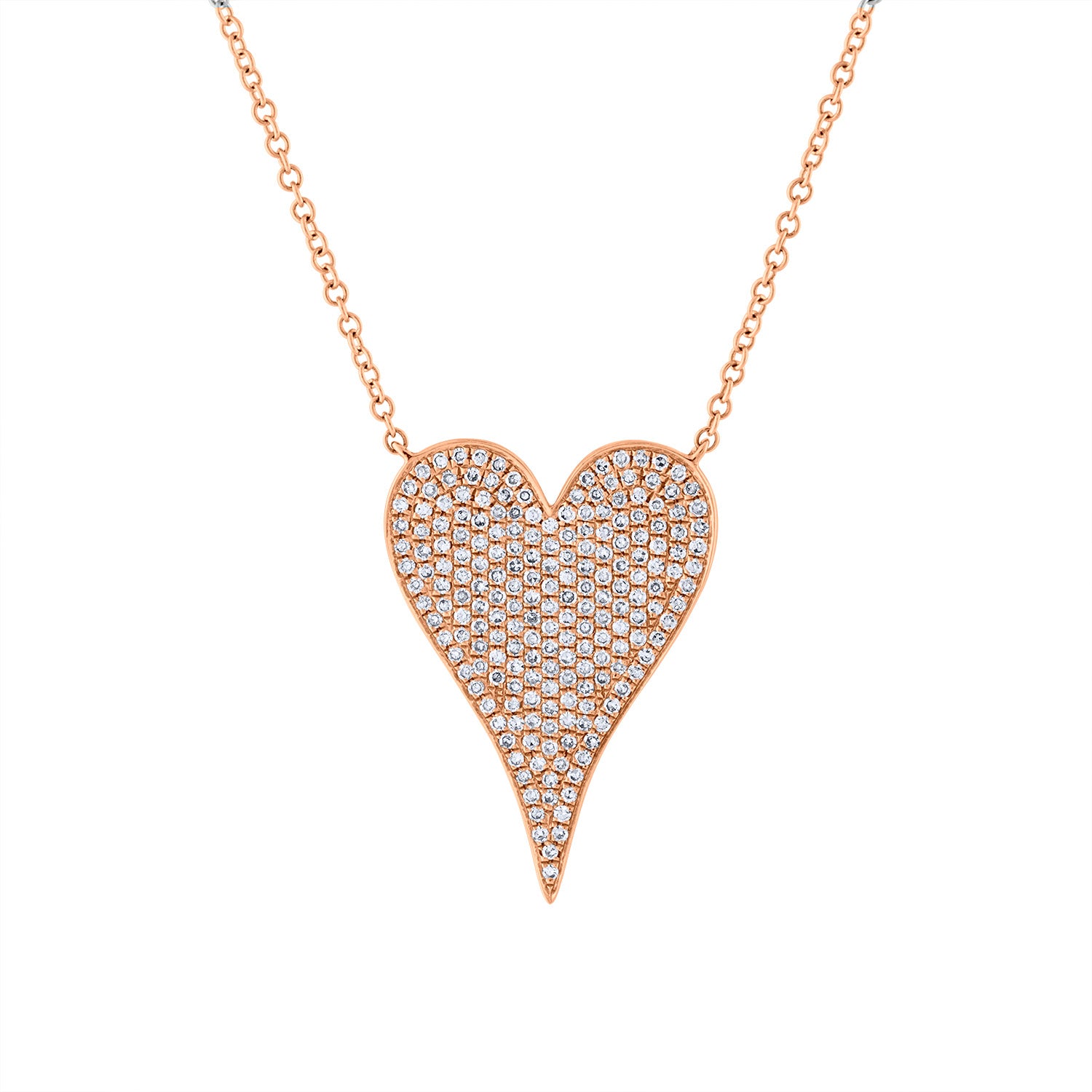 14KT Yellow, White, or Rose Gold diamond large modern heart necklace
