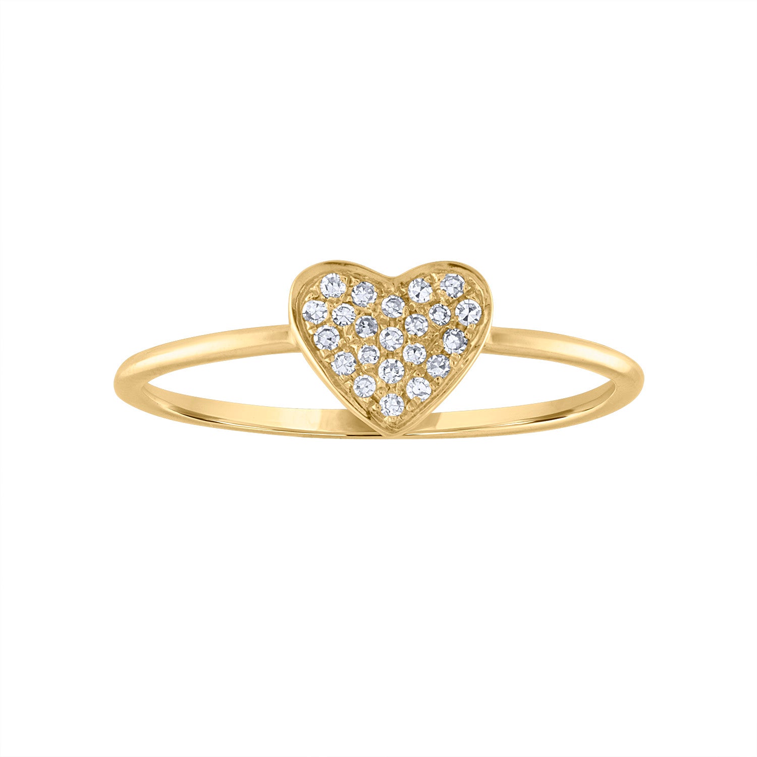 Make a heartfelt statement with this sweet and stackable 14k Gold Diamond Pave Heart Ring. This dainty and feminine ring is a jewelry box must-have. Wear this with some simple bands for a feminine look, or make it fun with other interesting rings!