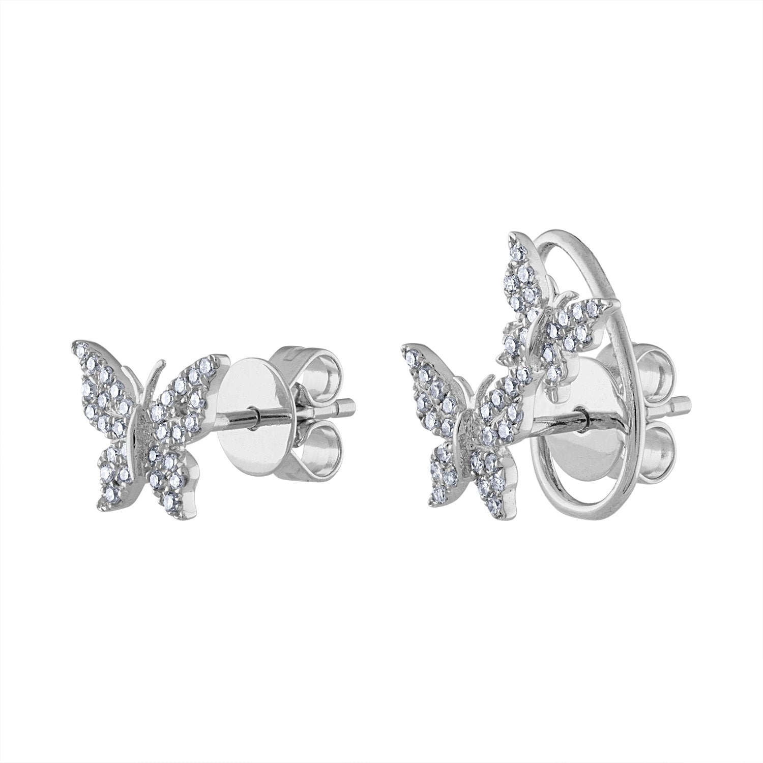 14KT White or Yellow Gold diamond asymmetrical butterfly earring