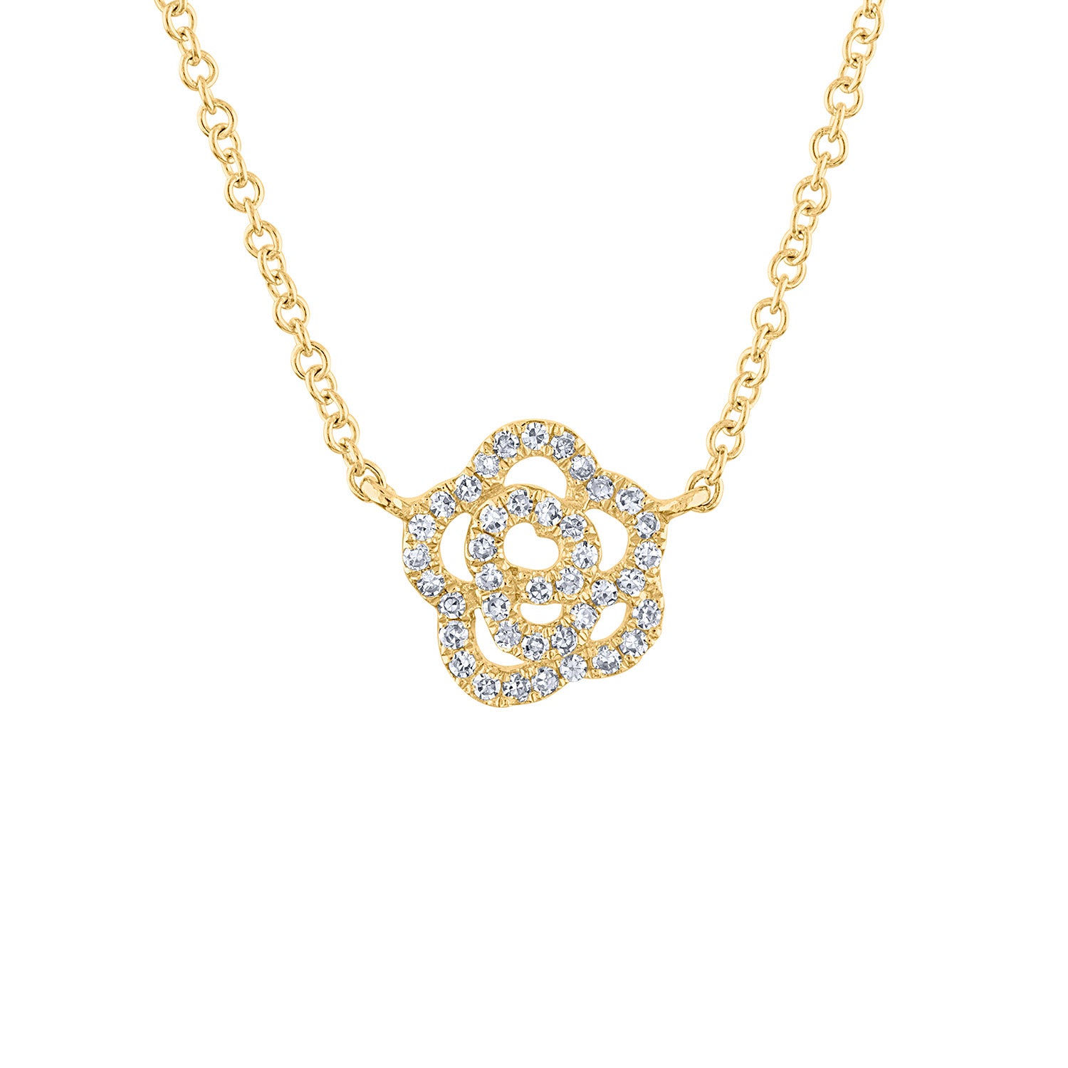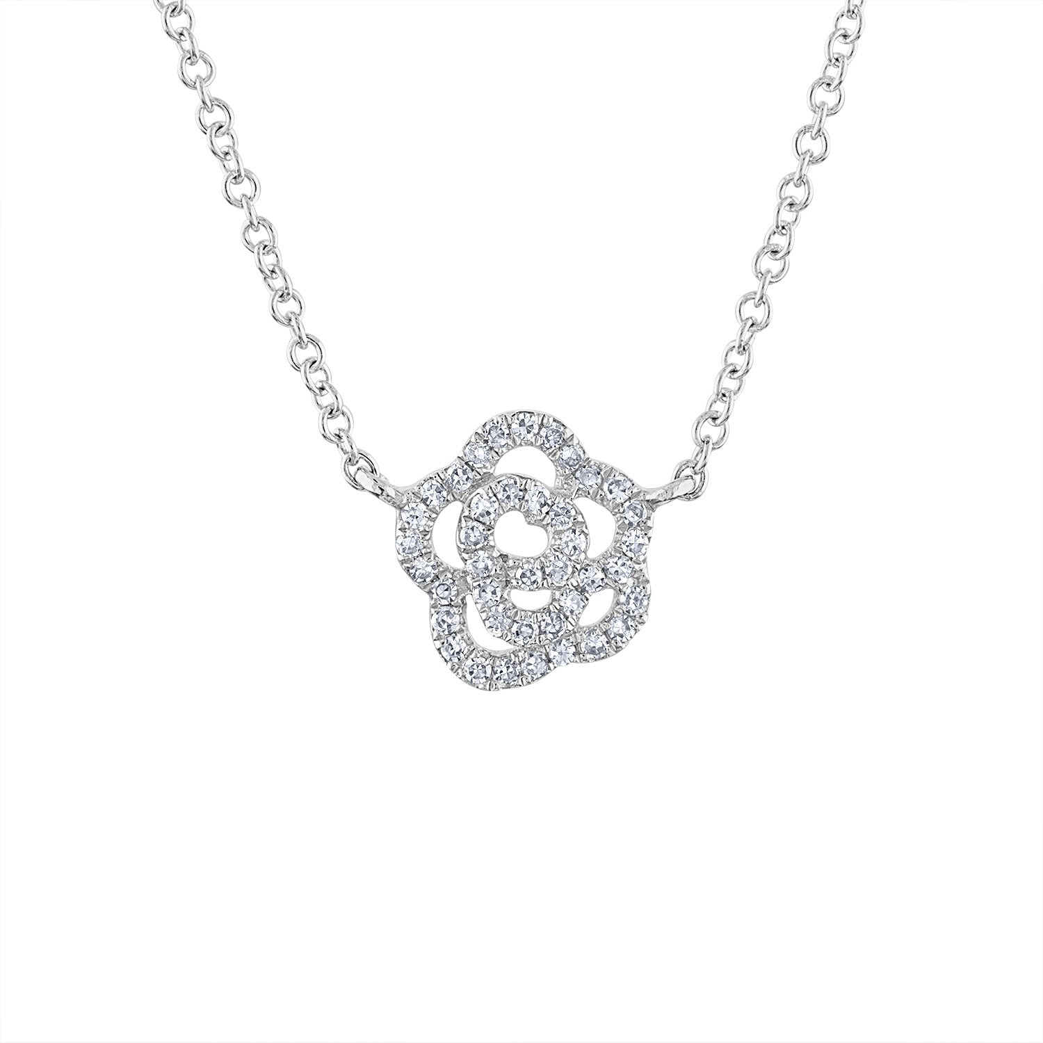 14KT White or Yellow Gold diamond outlined flower necklace