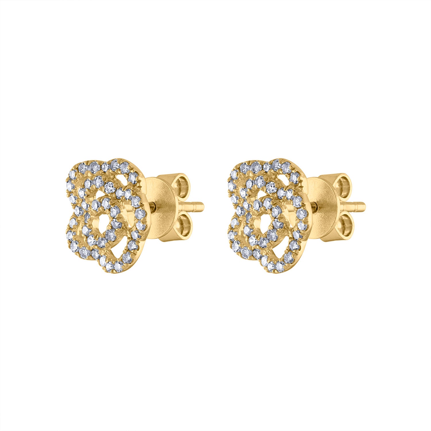 Evoke a romantic and whimsical look with this dazzling floral stud in 14k gold. Wear solo for a delicate and dainty look, or stack these studs behind a dangle earring to add extra glamour.