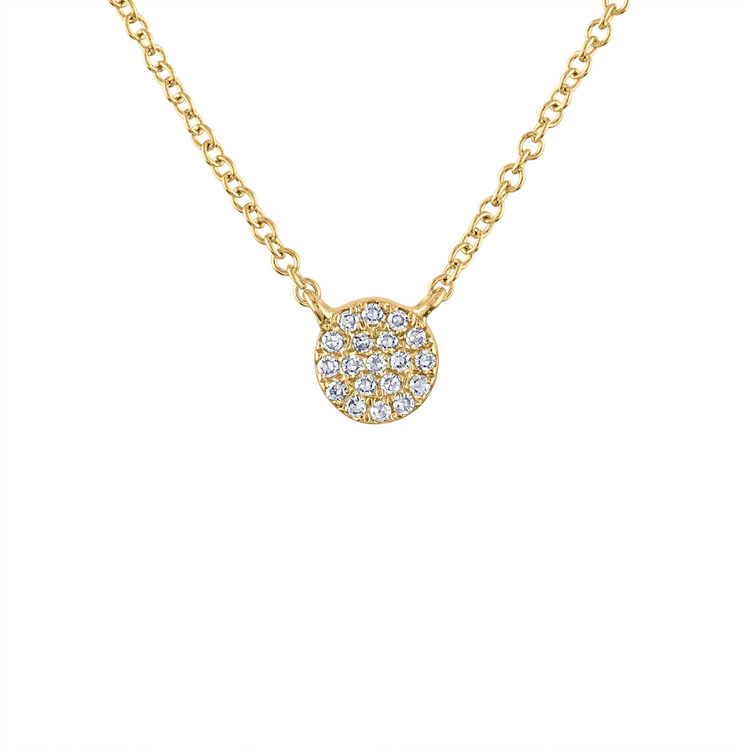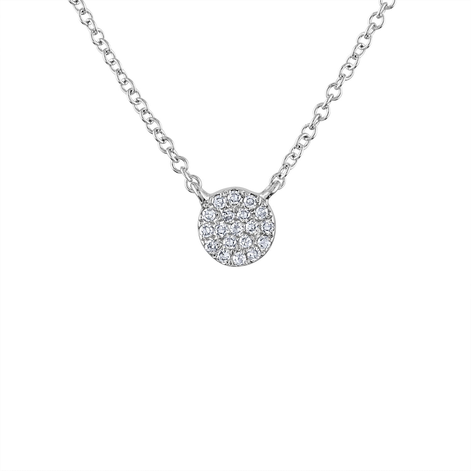 14KT White, Yellow or Rose Gold Pave Diamond mini disk necklace