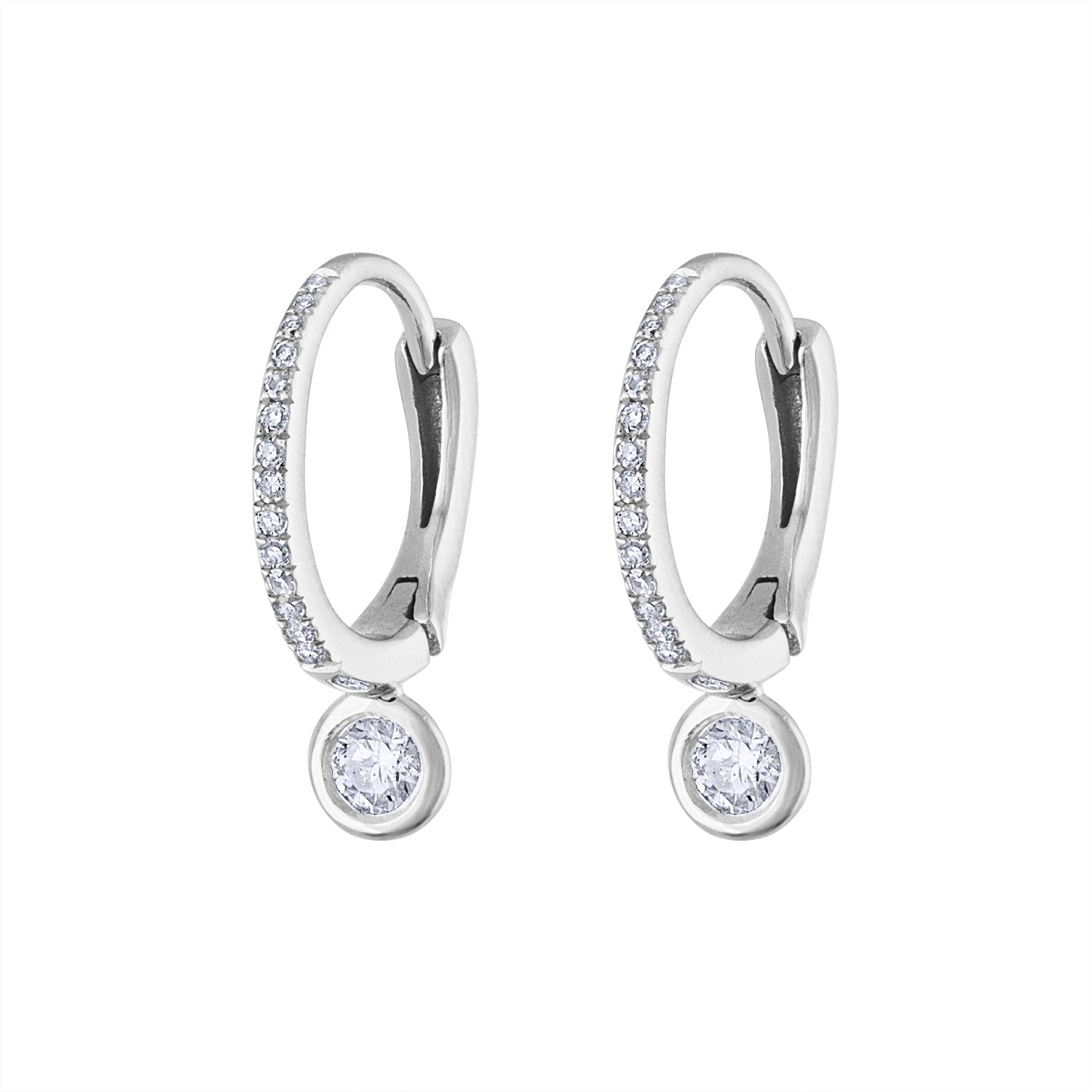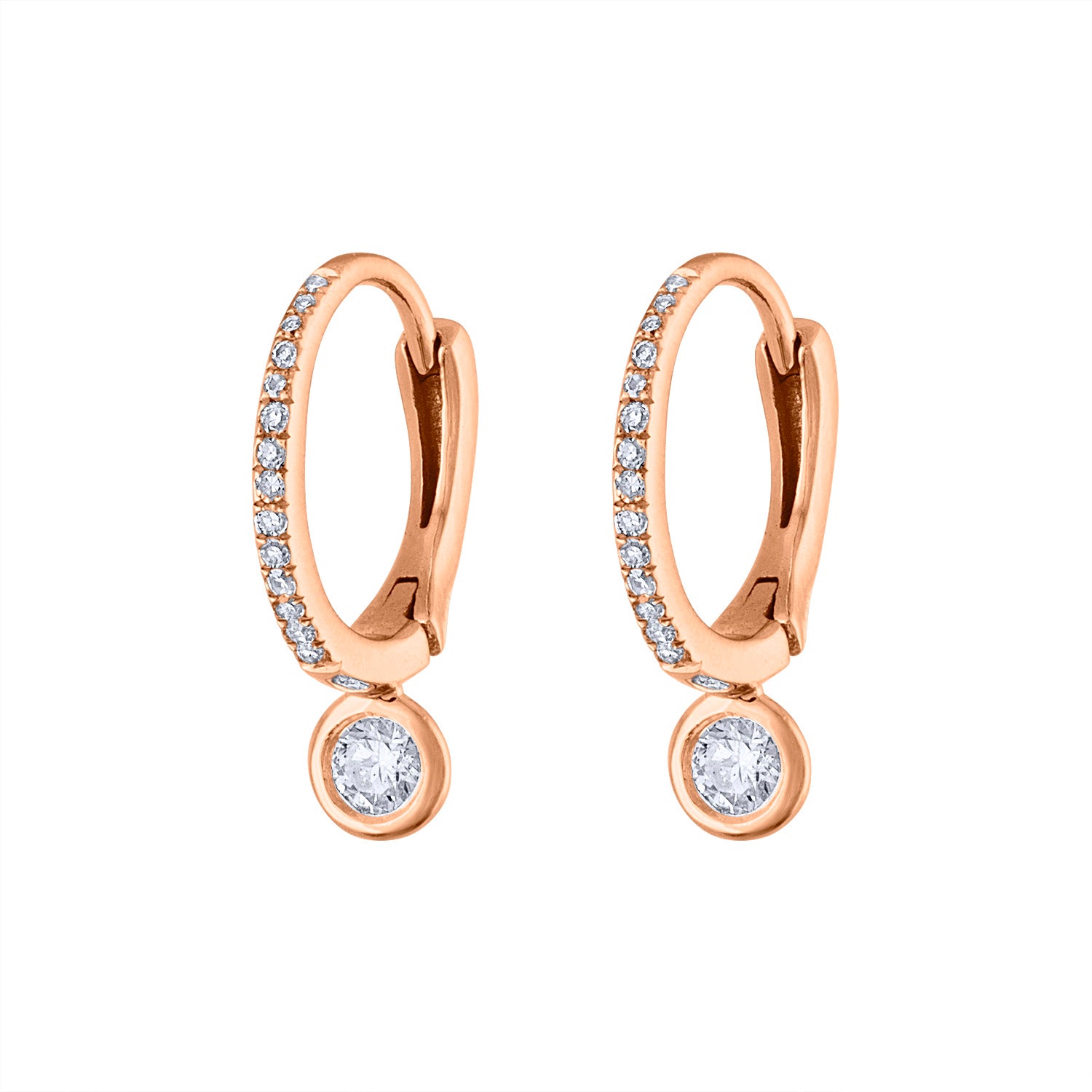 14KT White, Yellow, or Rose Gold small bezel set diamond huggie earring