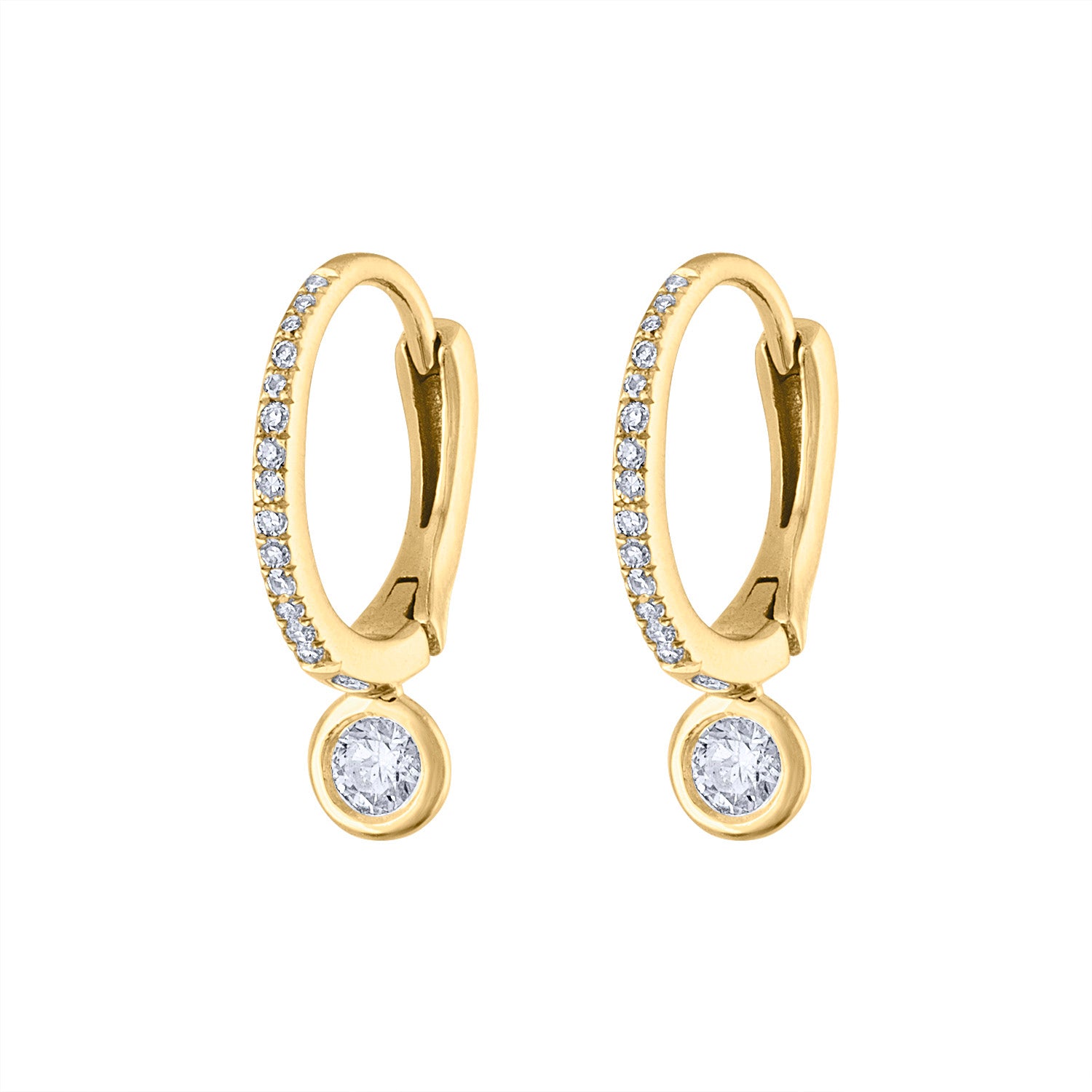 Turn heads in this brilliant set of 14k Gold Small Bezel Set Diamond Huggie Earrings. The bezel set stone swings freely to catch every bit of light, and the clasp sparkles brilliantly with pave-set stones! Wear this huggie solo for a sweet touch of luxury, or wear them as the perfect backup to a pair of dangling diamond earrings!