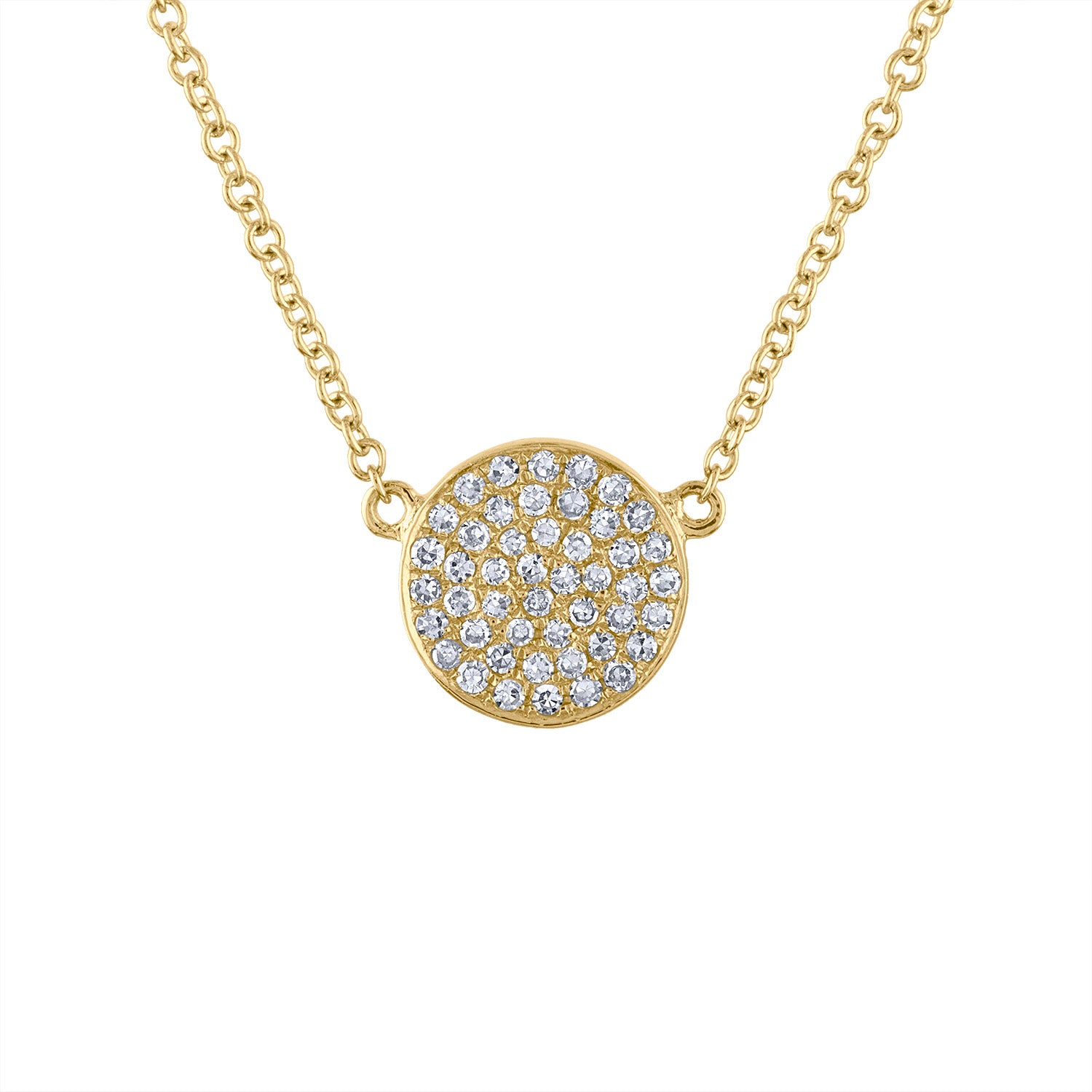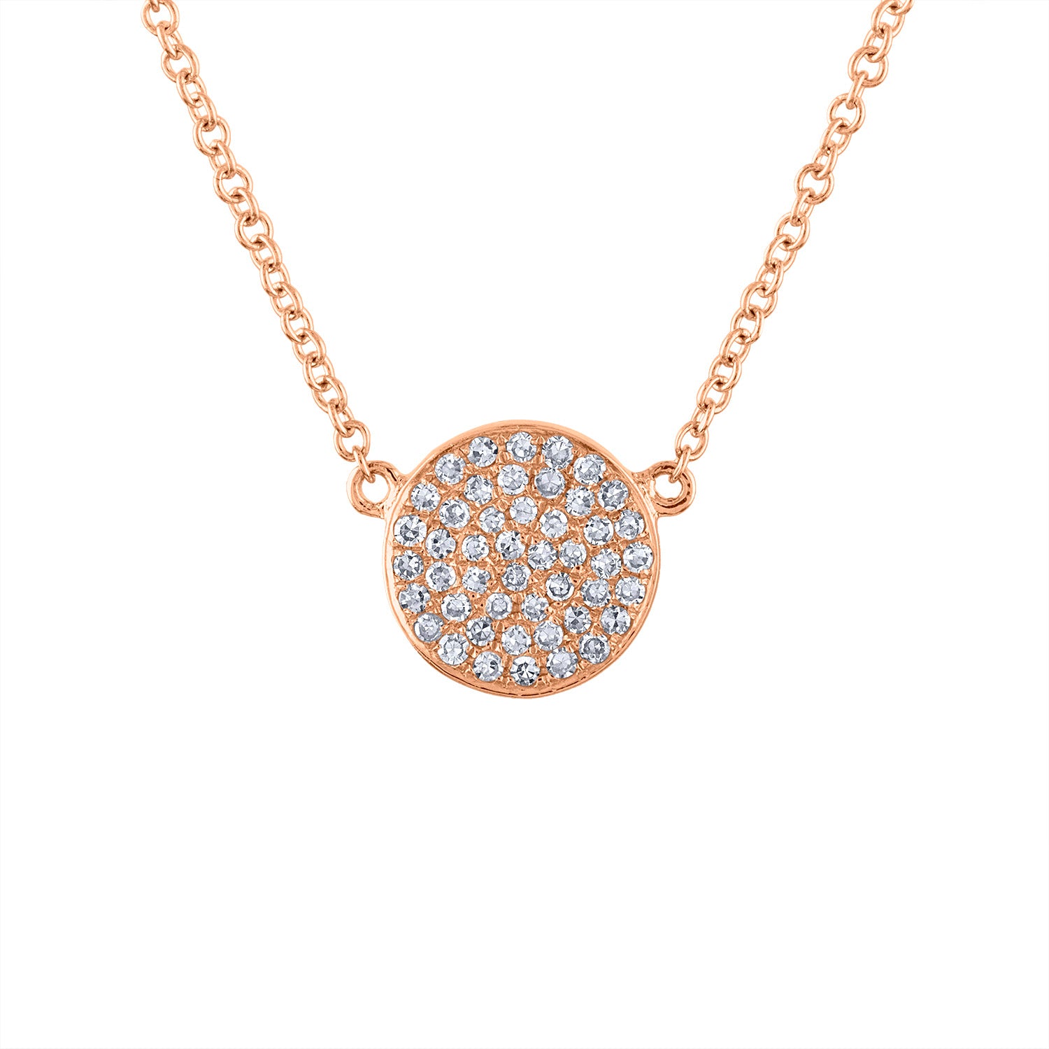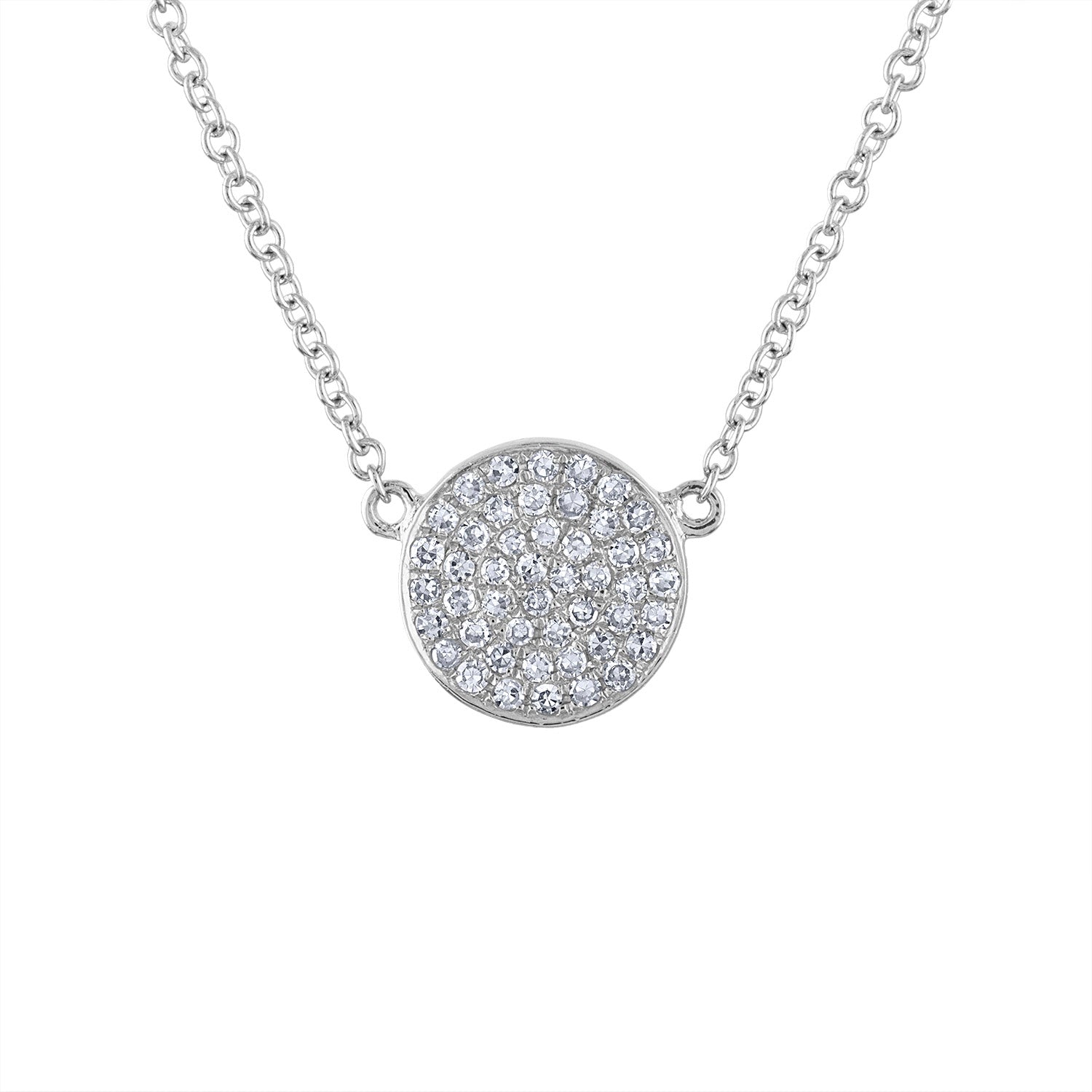 14KT White, Yellow, or Rose Gold small pave diamond disk necklace