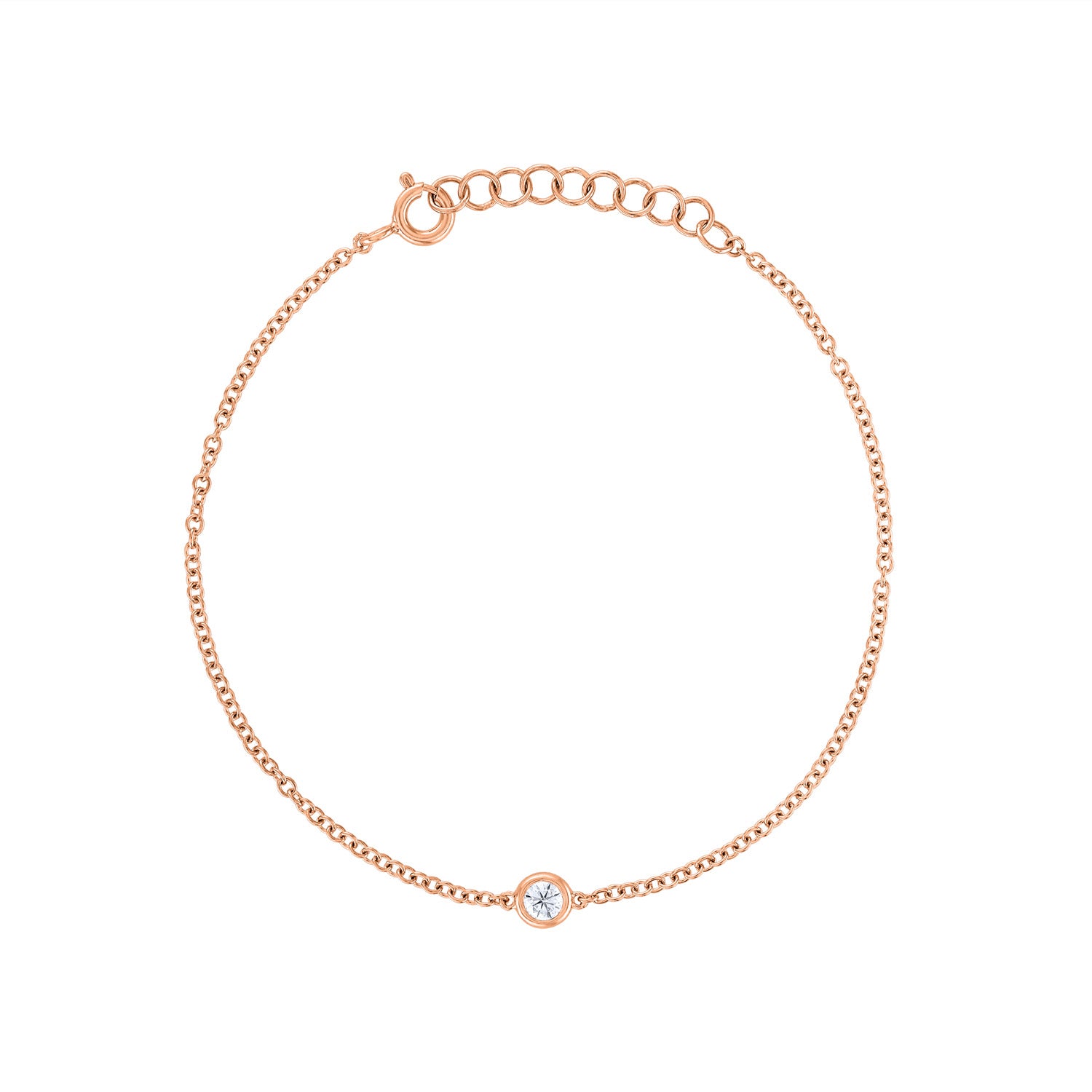 14KT Rose, White, or Yellow Gold diamond medium single bezel bracelet