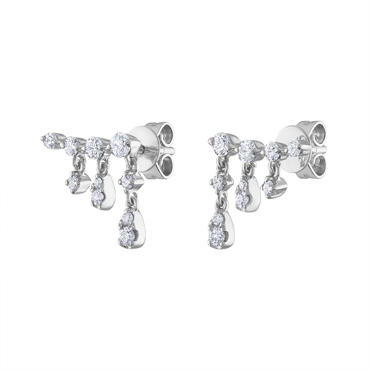 14KT White, Yellow, or Rose Gold diamond pear dangle climber earring