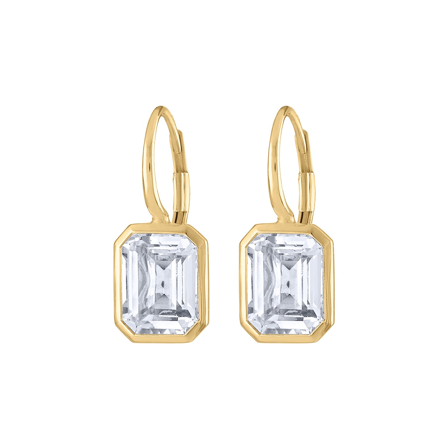 14KT White or Yellow Gold white topaz bezel rectangle drop euro earring