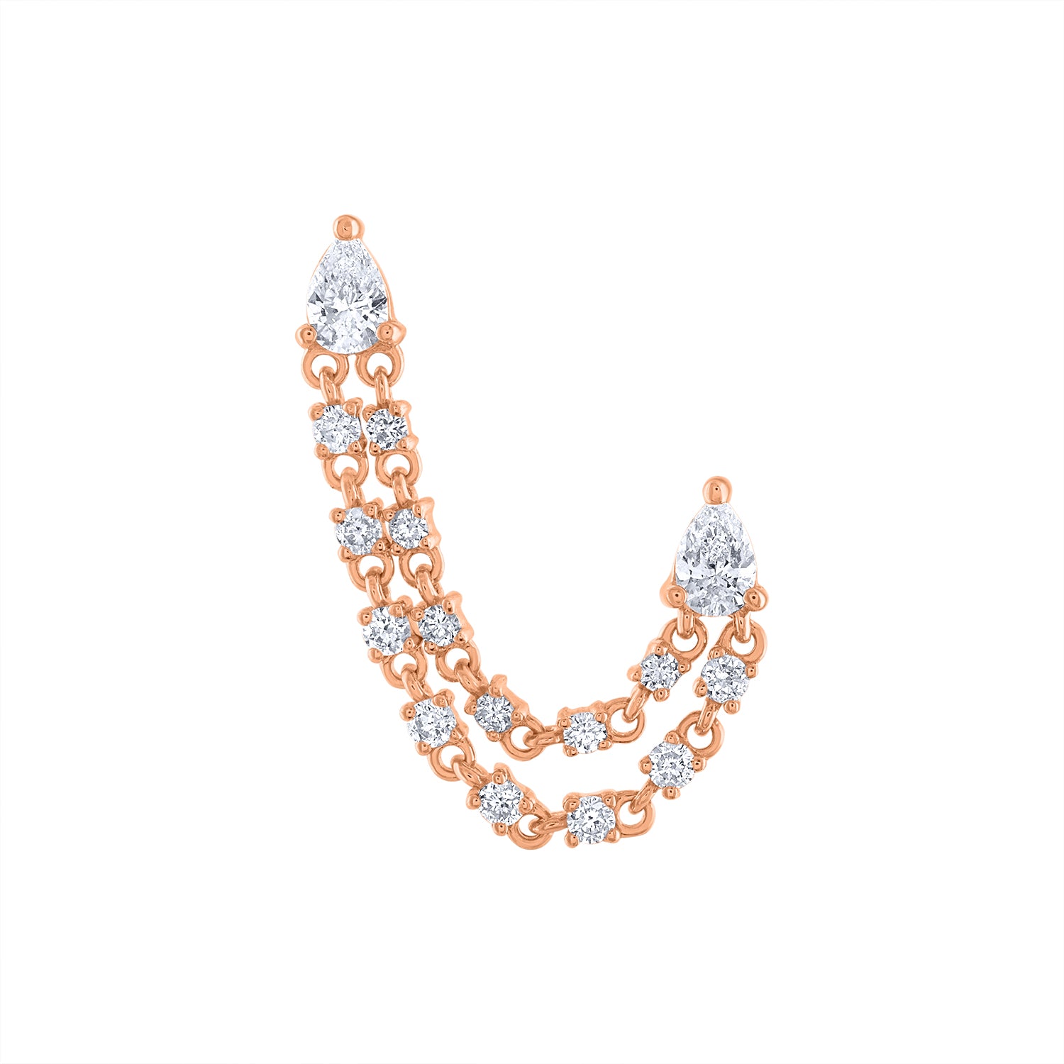 14KT GOLD DIAMOND DOUBLE PEAR DOUBLE CHAIN EARRING