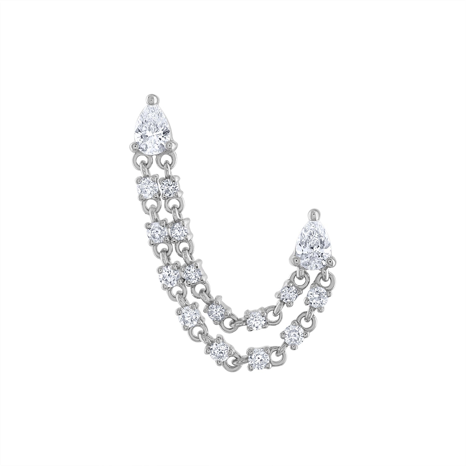 14KT White, Yellow, or Rose Gold diamond double pear and double prong chain earring