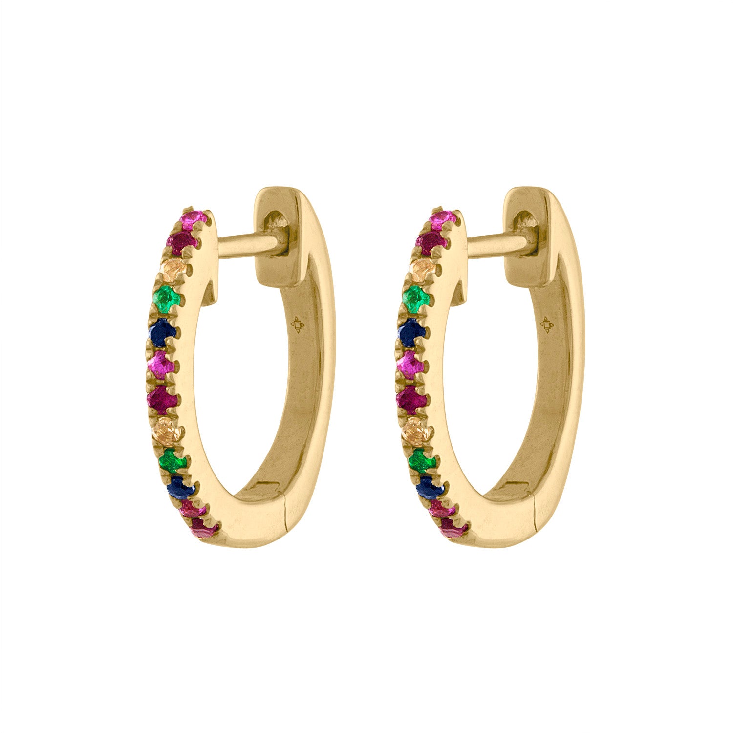 14KT GOLD MULTI-COLOR HUGGIE EARRING