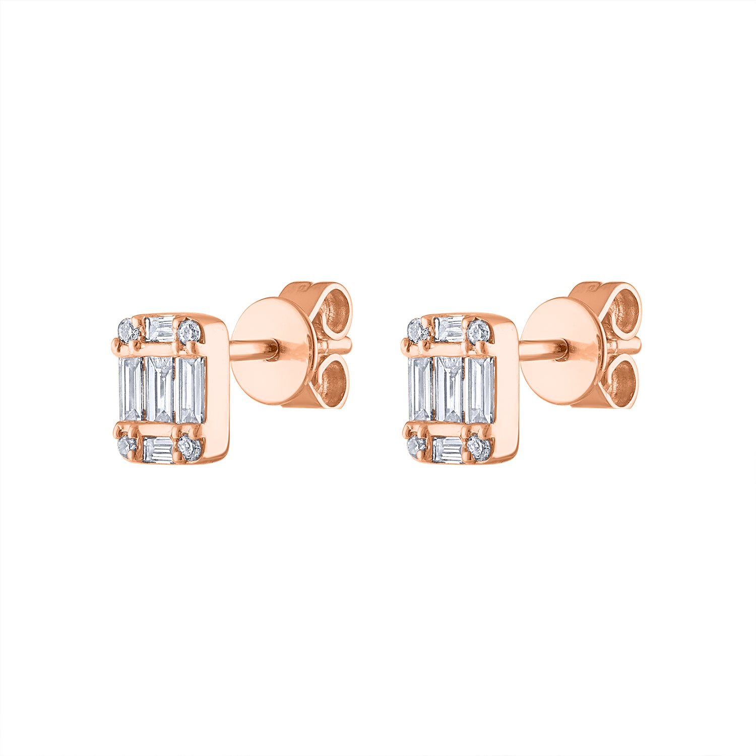 14KT White, Yellow, or Rose Gold diamond baguette prong rectangle stud earring