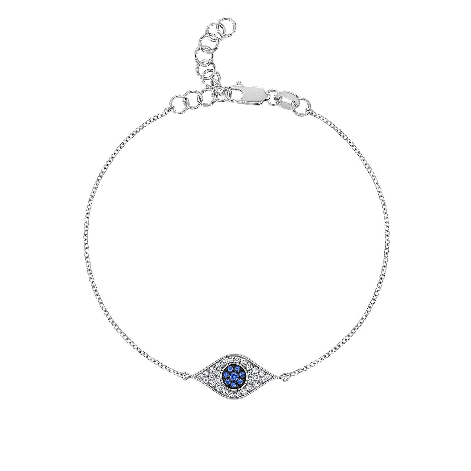 14KT White or Yellow Gold diamond blue sapphire evil eye bracelet