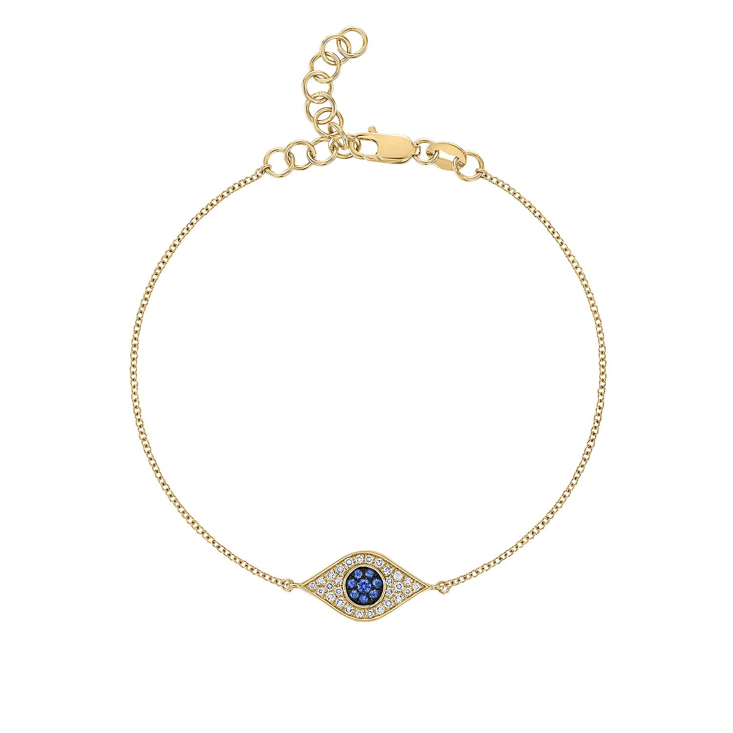 14KT GOLD DIAMOND BLUE SAPPHIRE EVIL EYE BRACELET