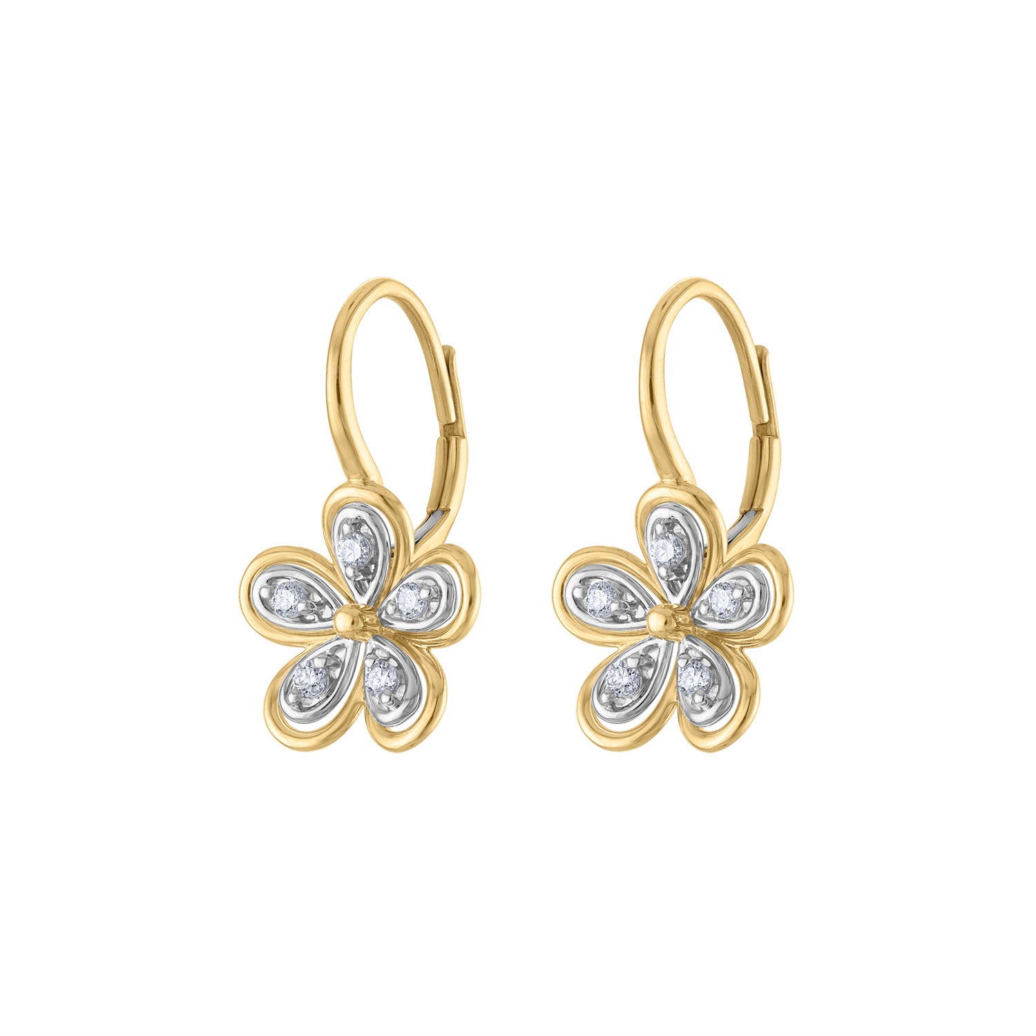 14KT Two-Tone White and Yellow Gold diamond flower drop euro earring