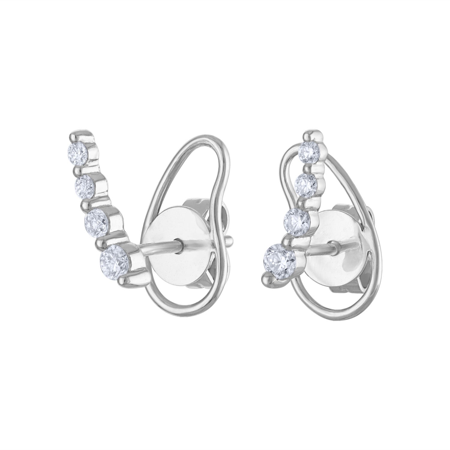 14KT White or Yellow Gold diamond prong four stone curve earring