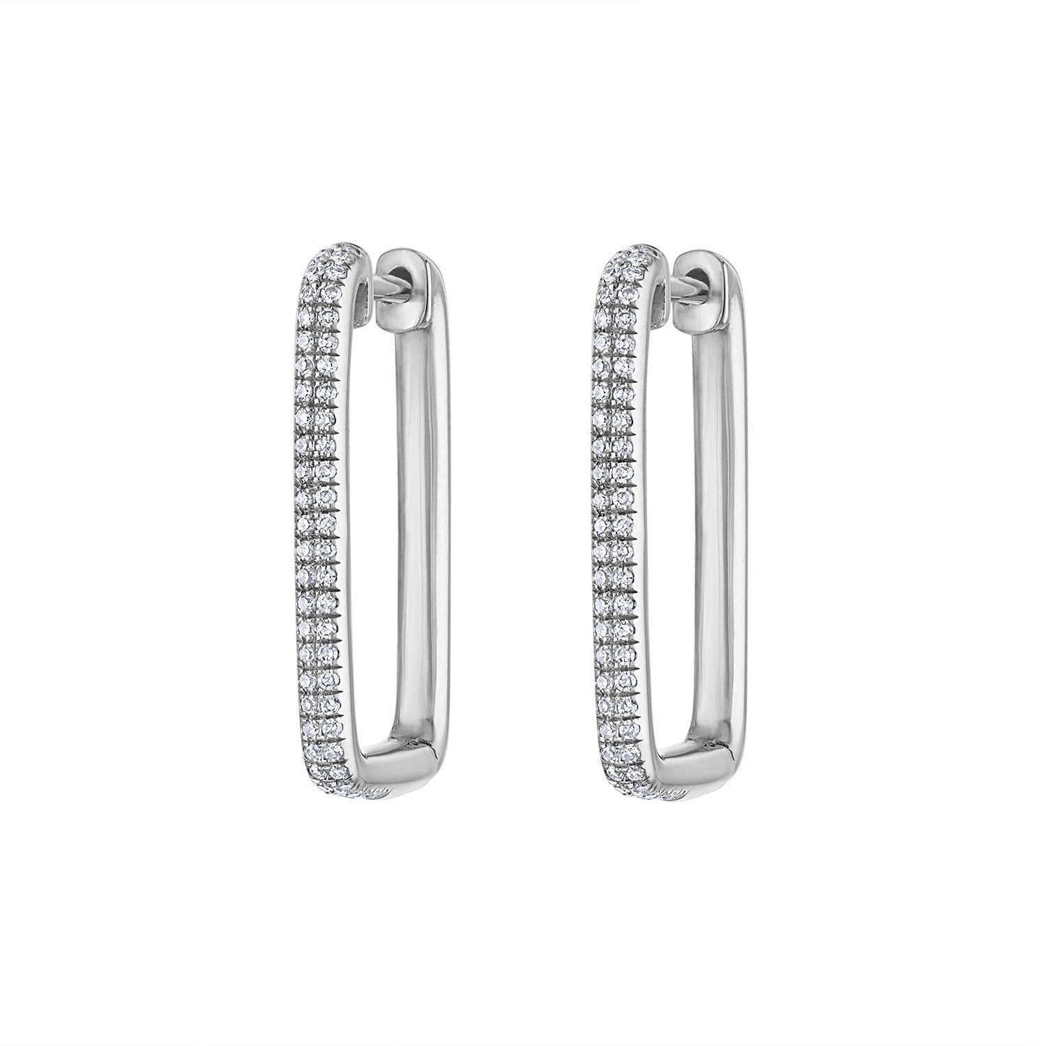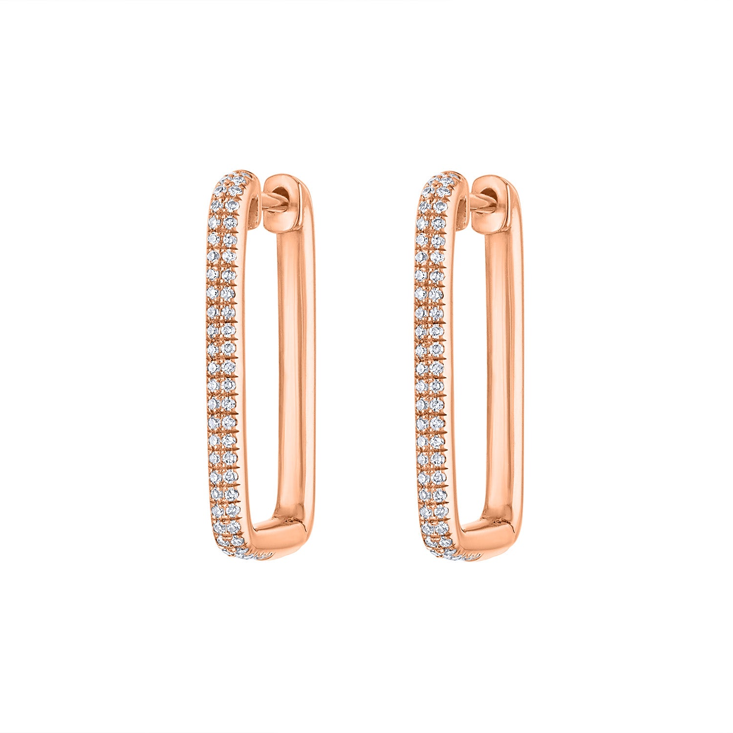 14KT White, Yellow, or Rose Gold pave diamond medium rectangle hoop earring