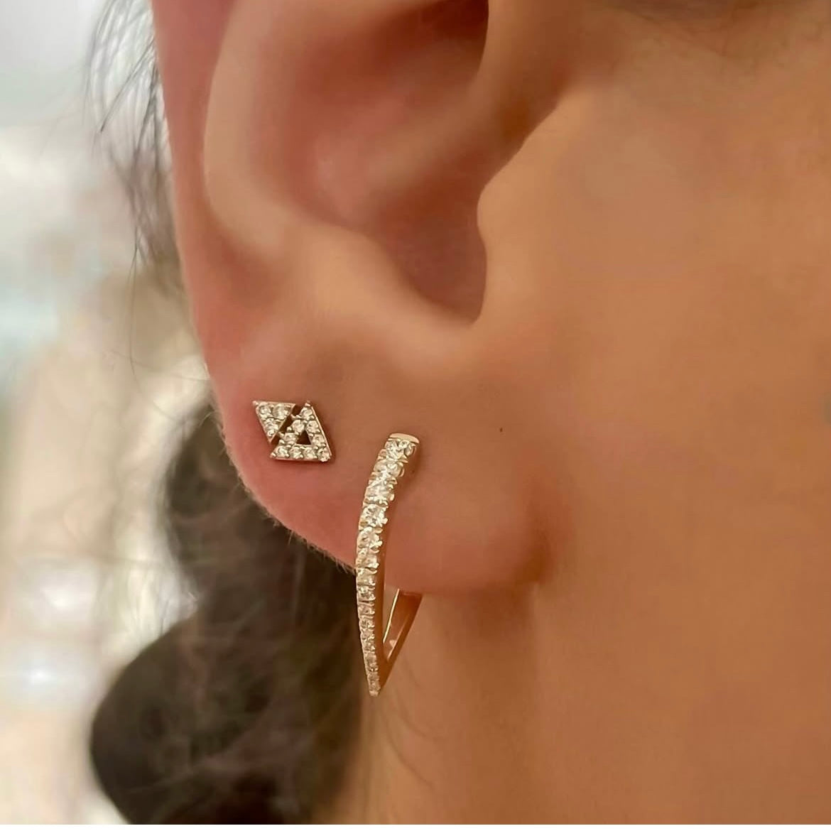 14KT Rose, White, or Yellow Gold diamond pear huggie earring
