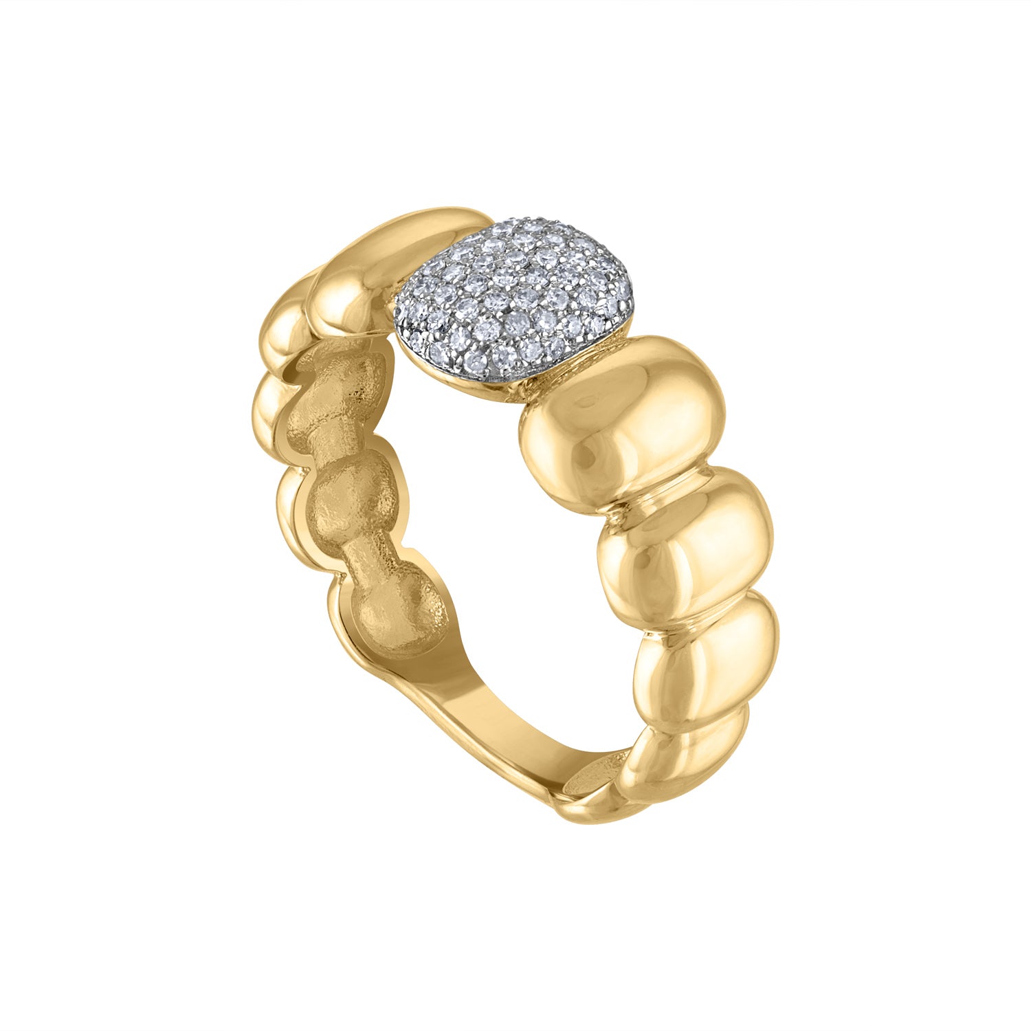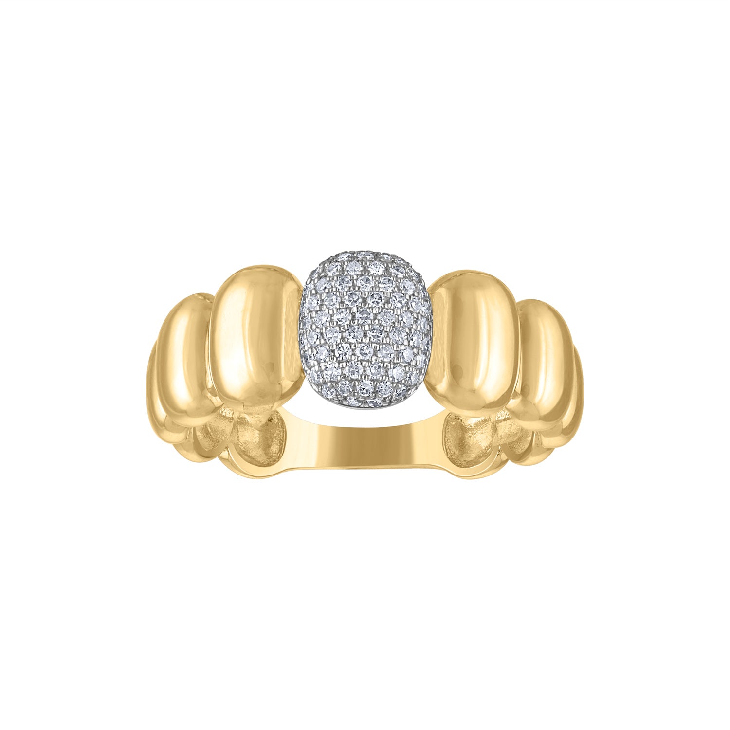 14KT Two-Tone White and Yellow Gold pave diamond oval shapes ring