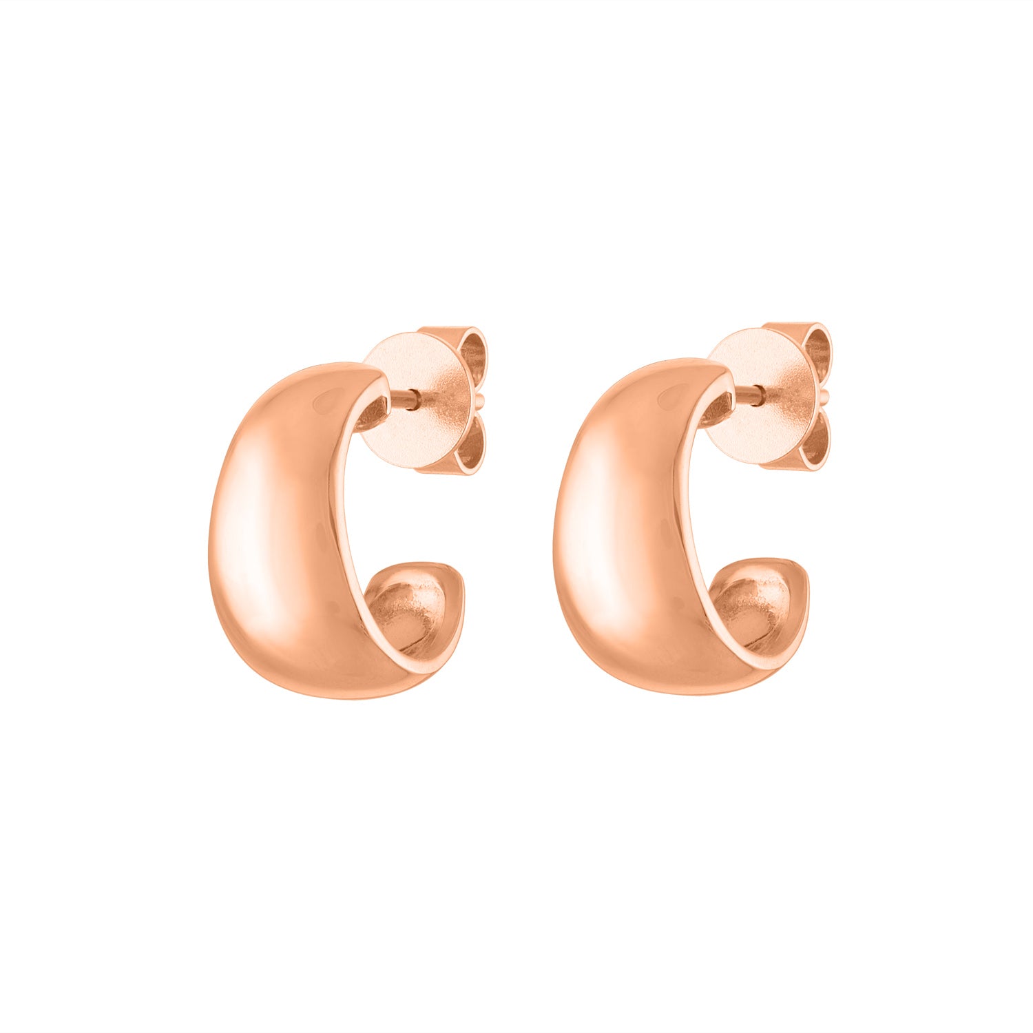 14KT Rose, White, or Yellow Gold shiny wide tapered post hoop earring