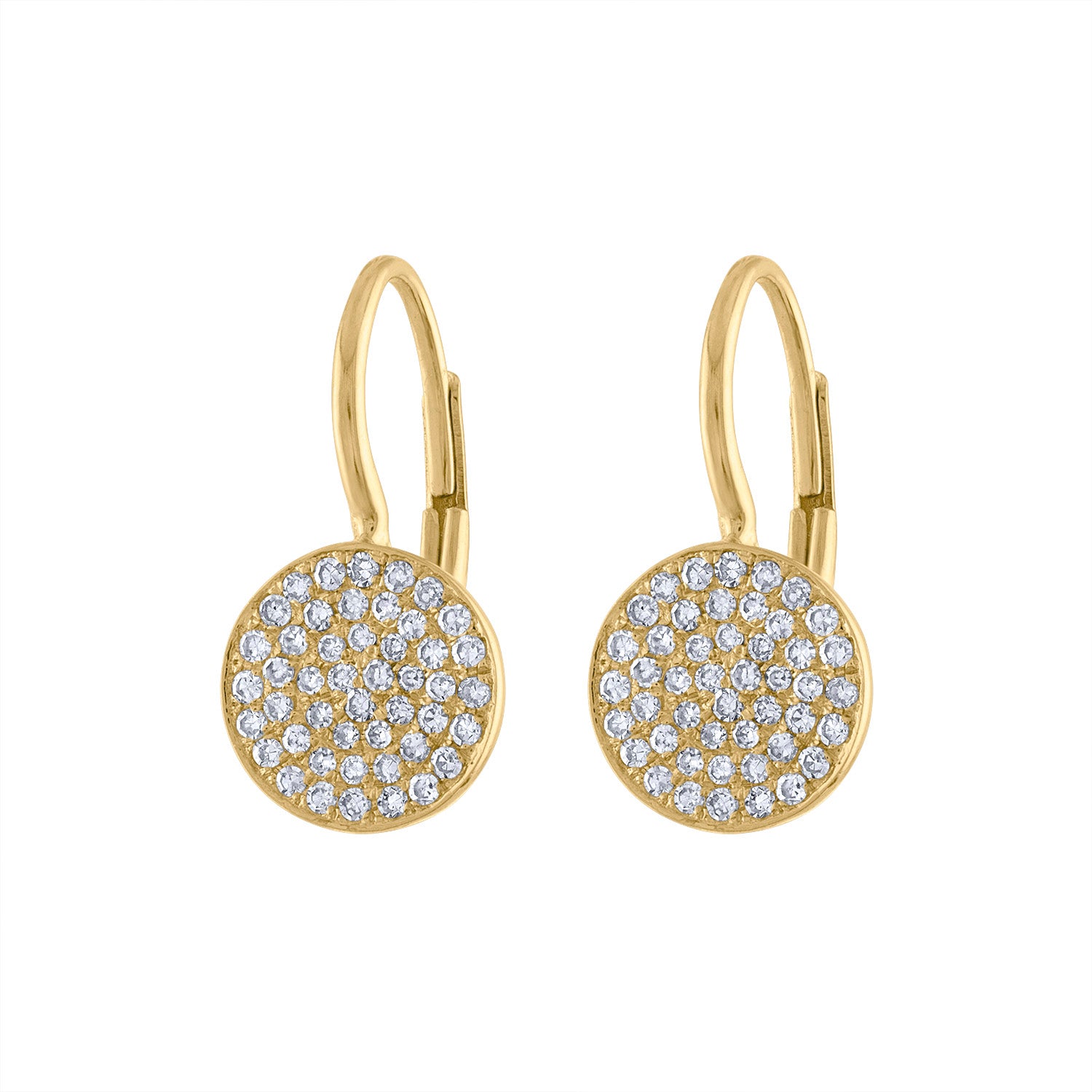 Add the glamour of diamonds to your earring look with these versatile 14k Gold Medium Pave Diamond Disk Earrings. These beauties are crafted from 14k white, yellow, or rose gold and will add glimmering sparkle to any look. Wear these as your go-to professional studs, or stack them up with other fine pieces for a more eye-catching look.