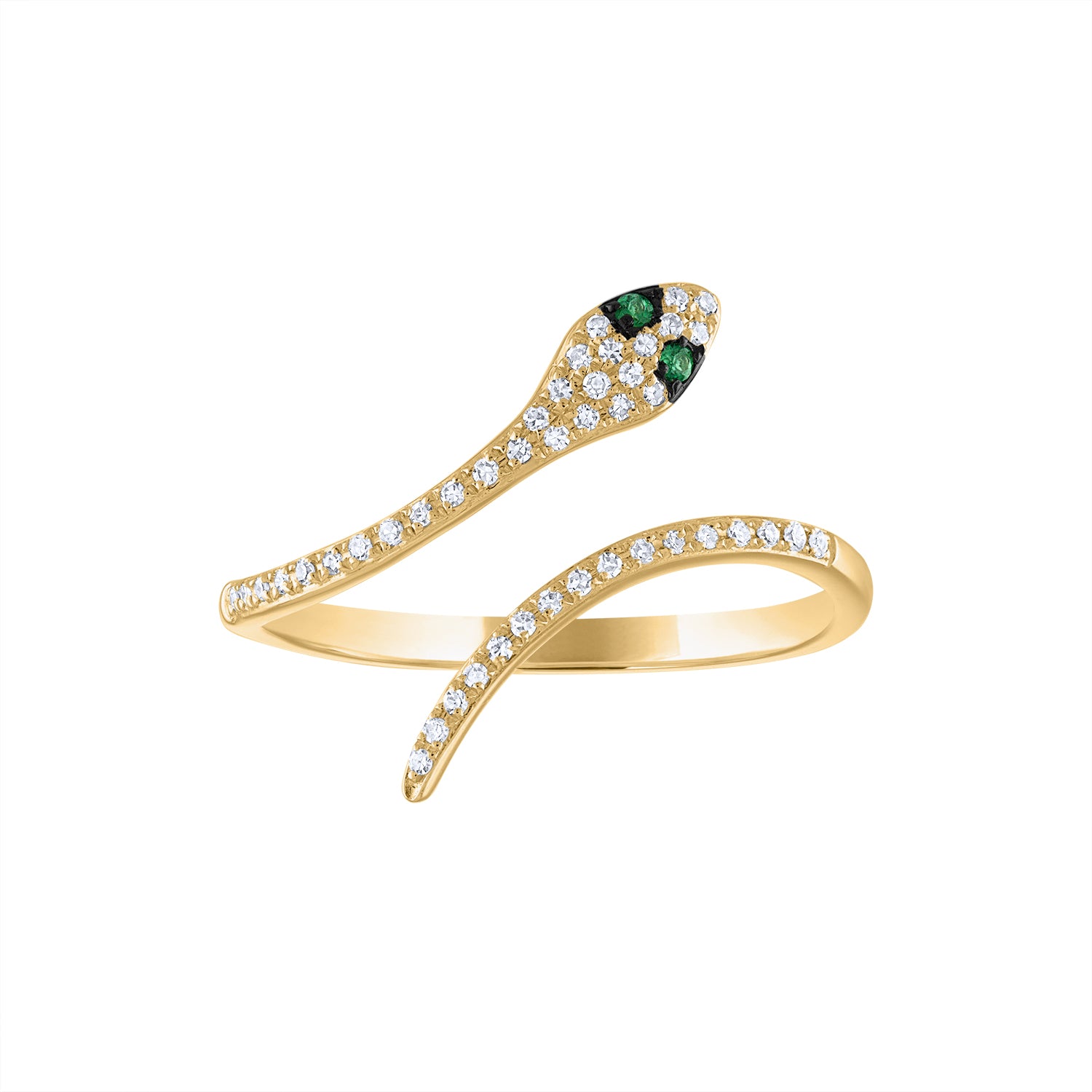 14KT Yellow Gold diamond emerald snake ring