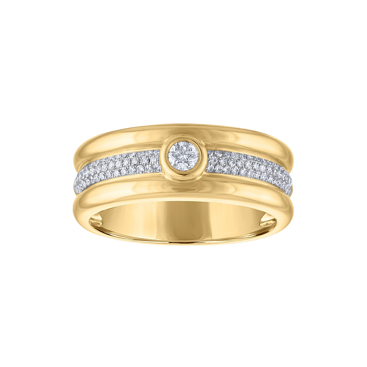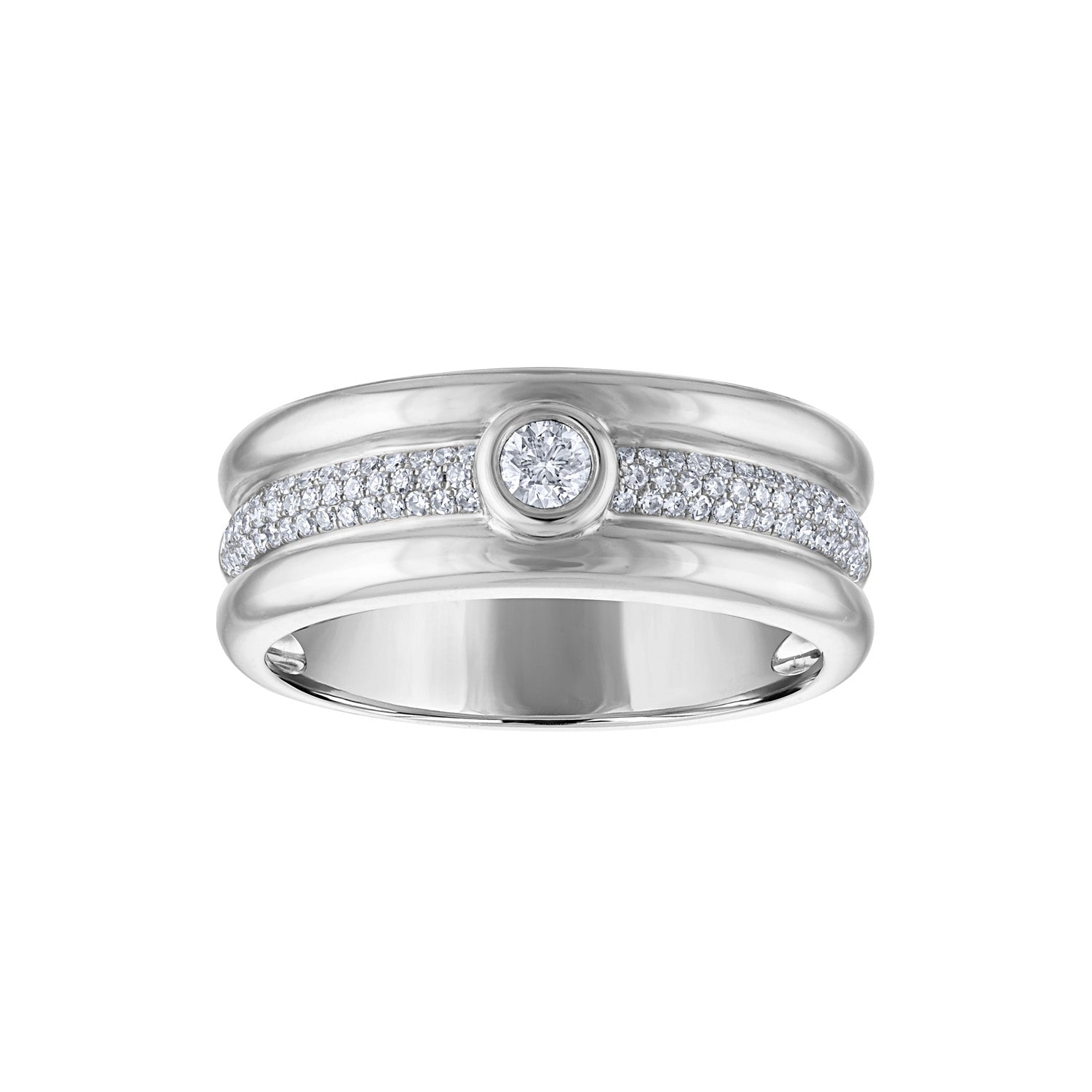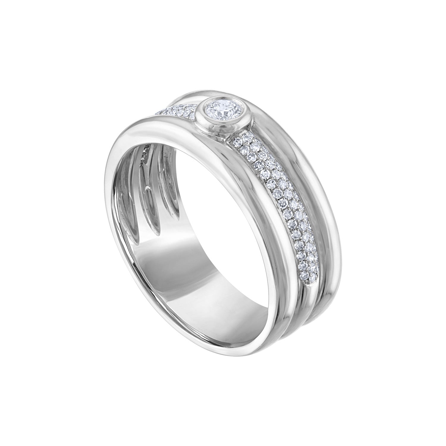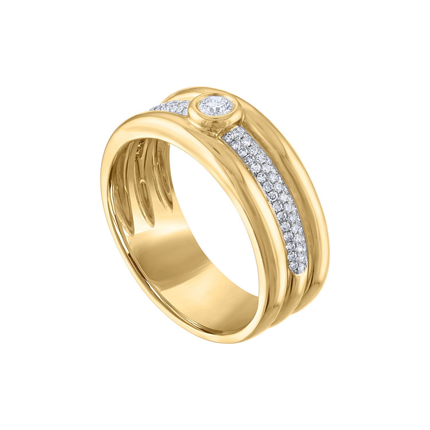 14KT White or Yellow Gold diamond bezel three line ring