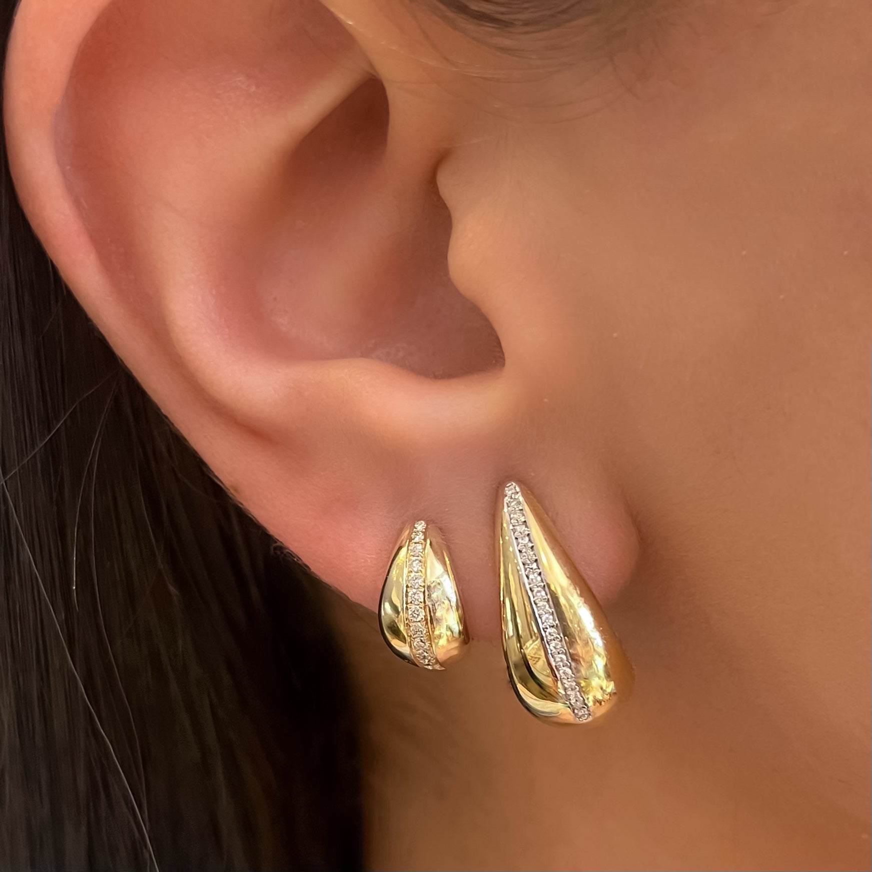 14KT GOLD DIAMOND ONE LINE TAPERED HUGGIE EARRING