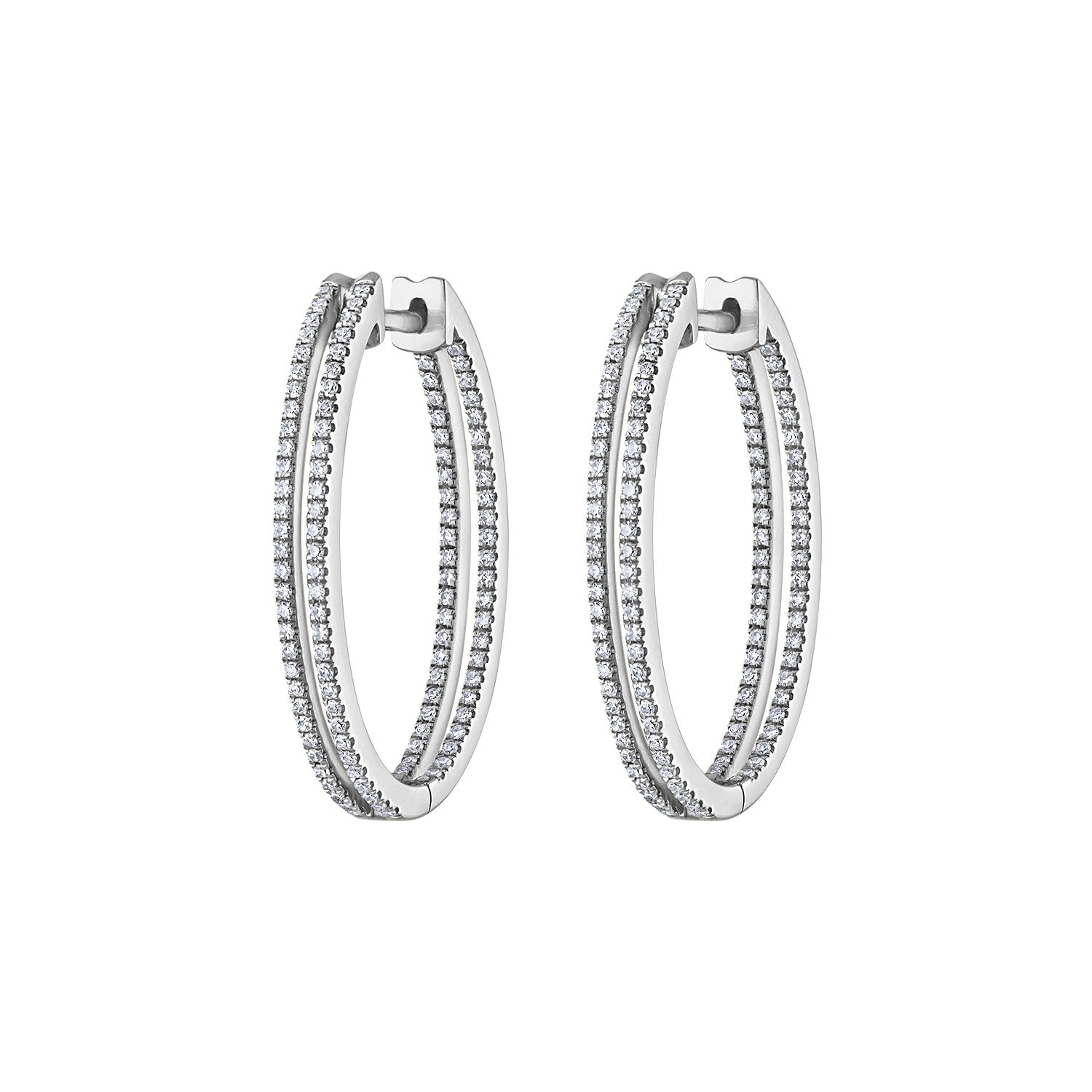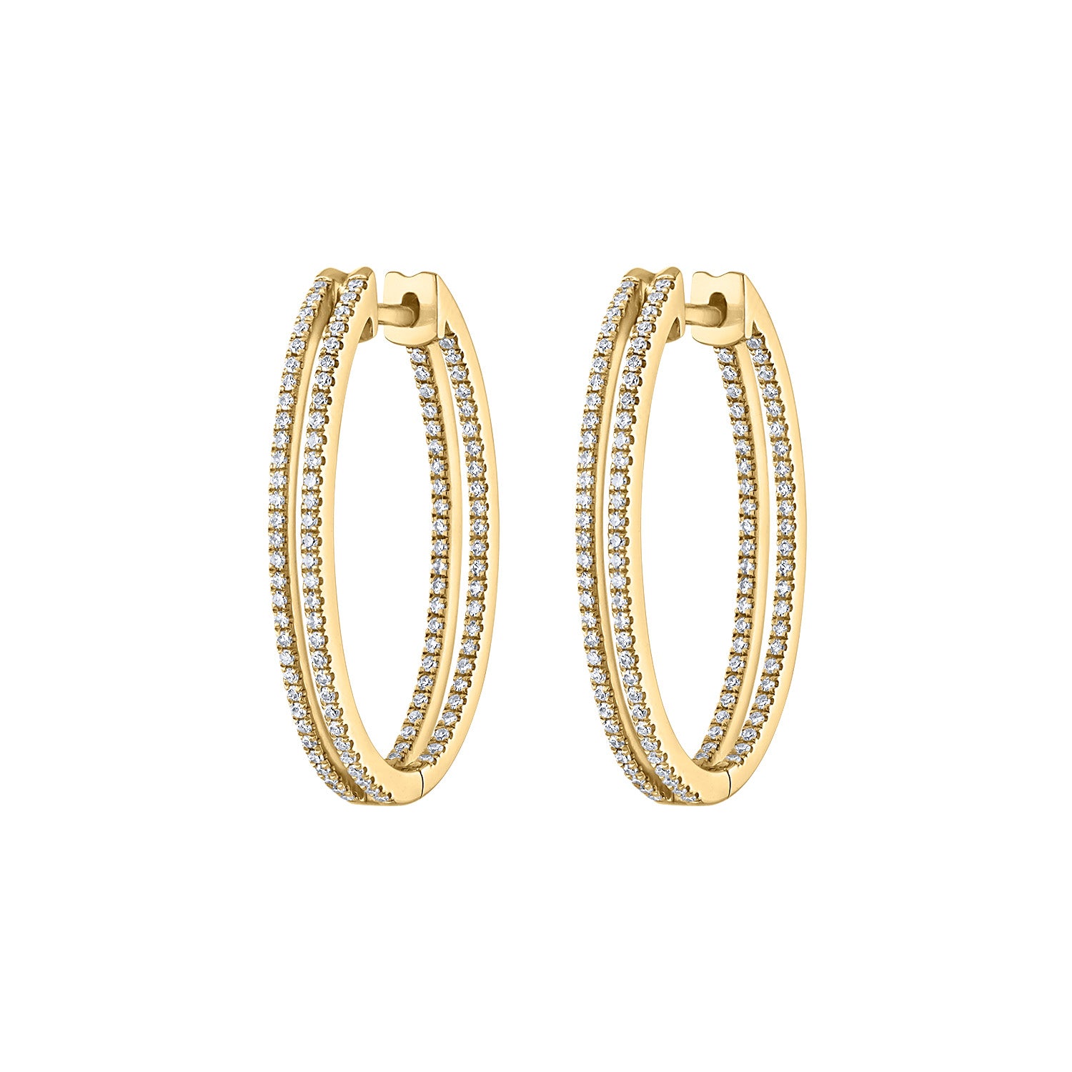 14KT GOLD DIAMOND TWO ROW OVAL HOOP EARRING