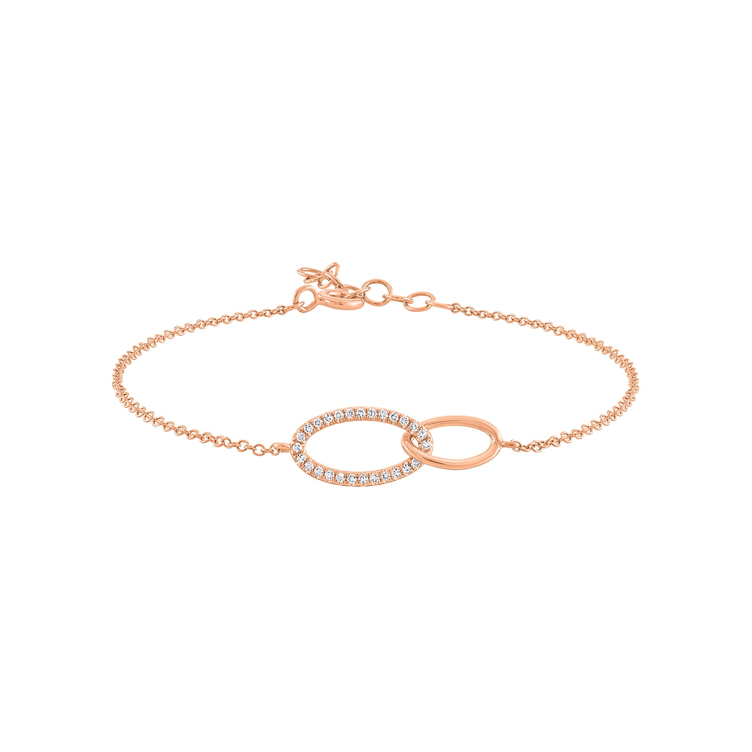 14KT White, Yellow, or Rose Gold diamond interlocking oval bracelet