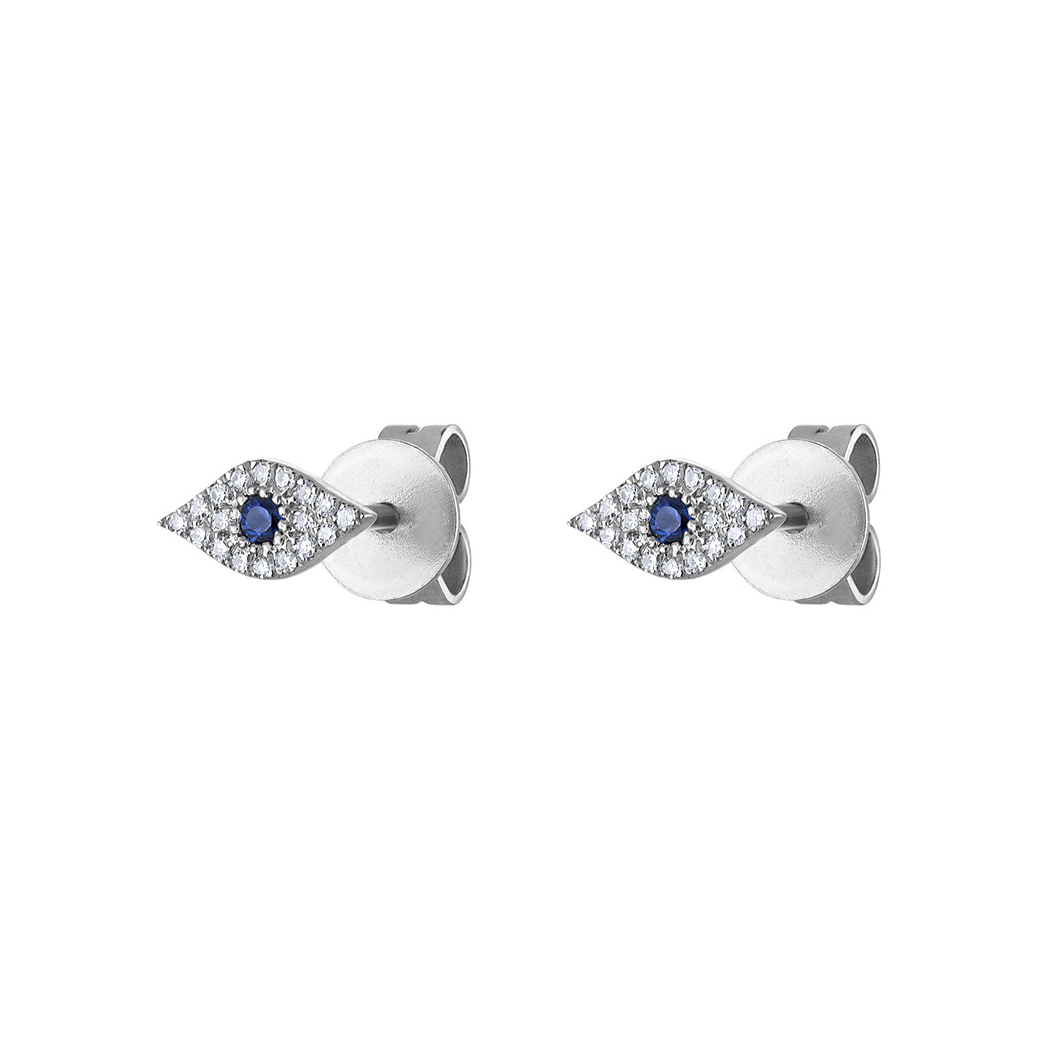 14KT White or Yellow Gold diamond blue sapphire evil eye earring