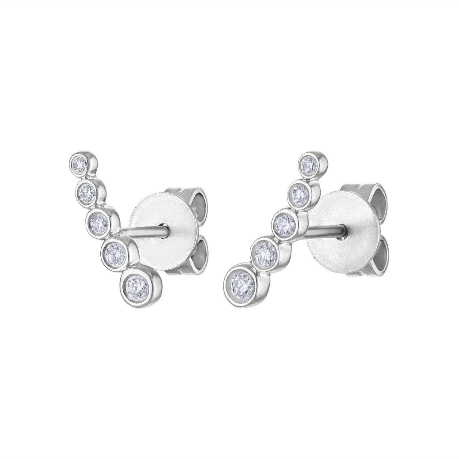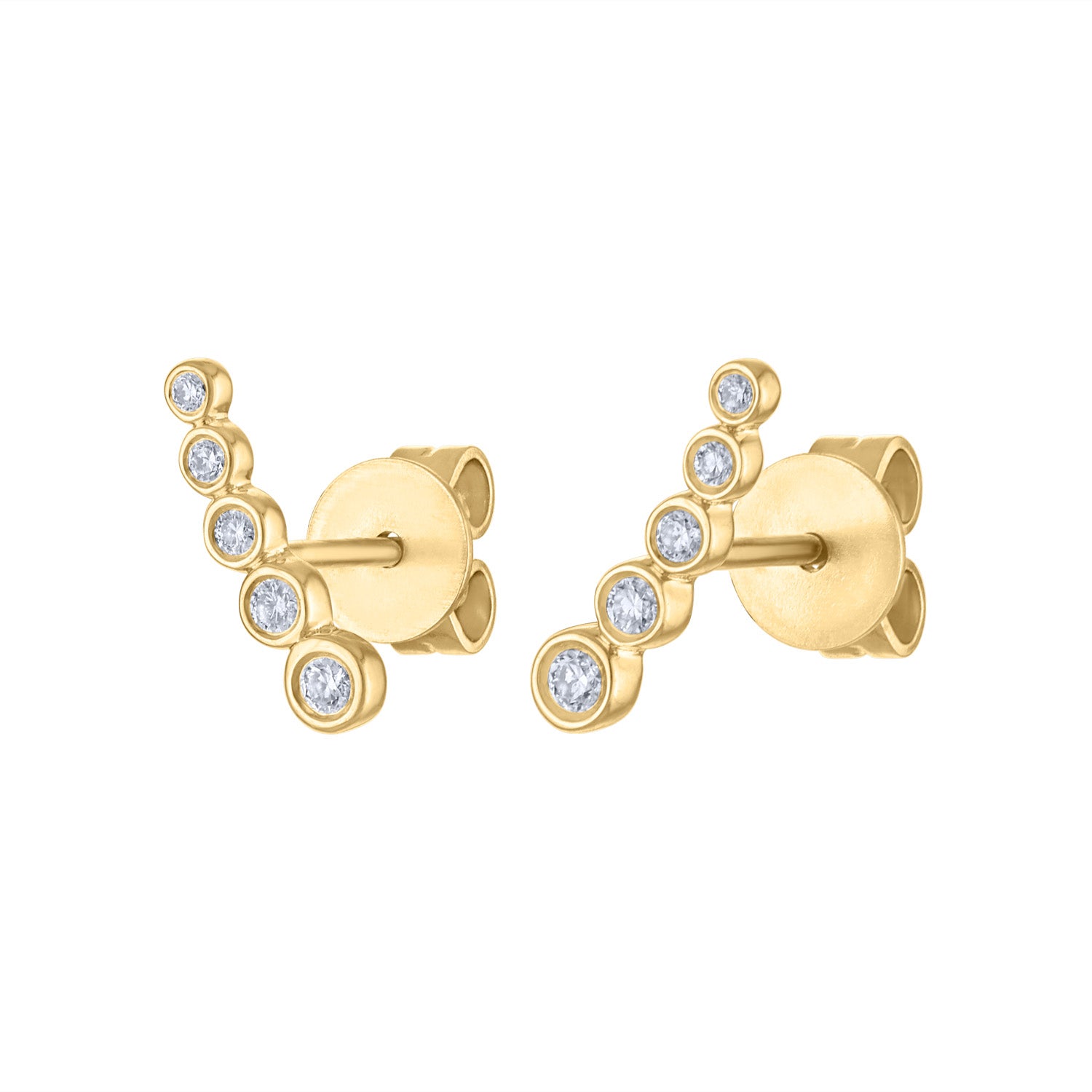 14KT GOLD DIAMOND FIVE BEZEL CURVE EARRING