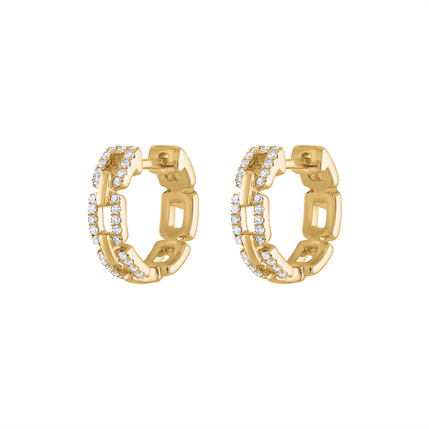 The classic look of a luxury chain in a bejeweled huggie earring! This pair of 14KT beauties will add a touch of luxe glamour to your next big night out.